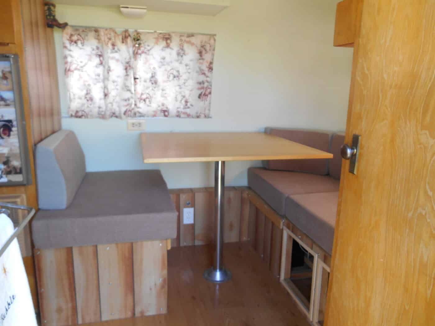 The trailer has always been stored inside since I got it in 2015. At that time it had been repainted inside, new flooring installed and new cushions. The curtains need replaced so you can make it your own!