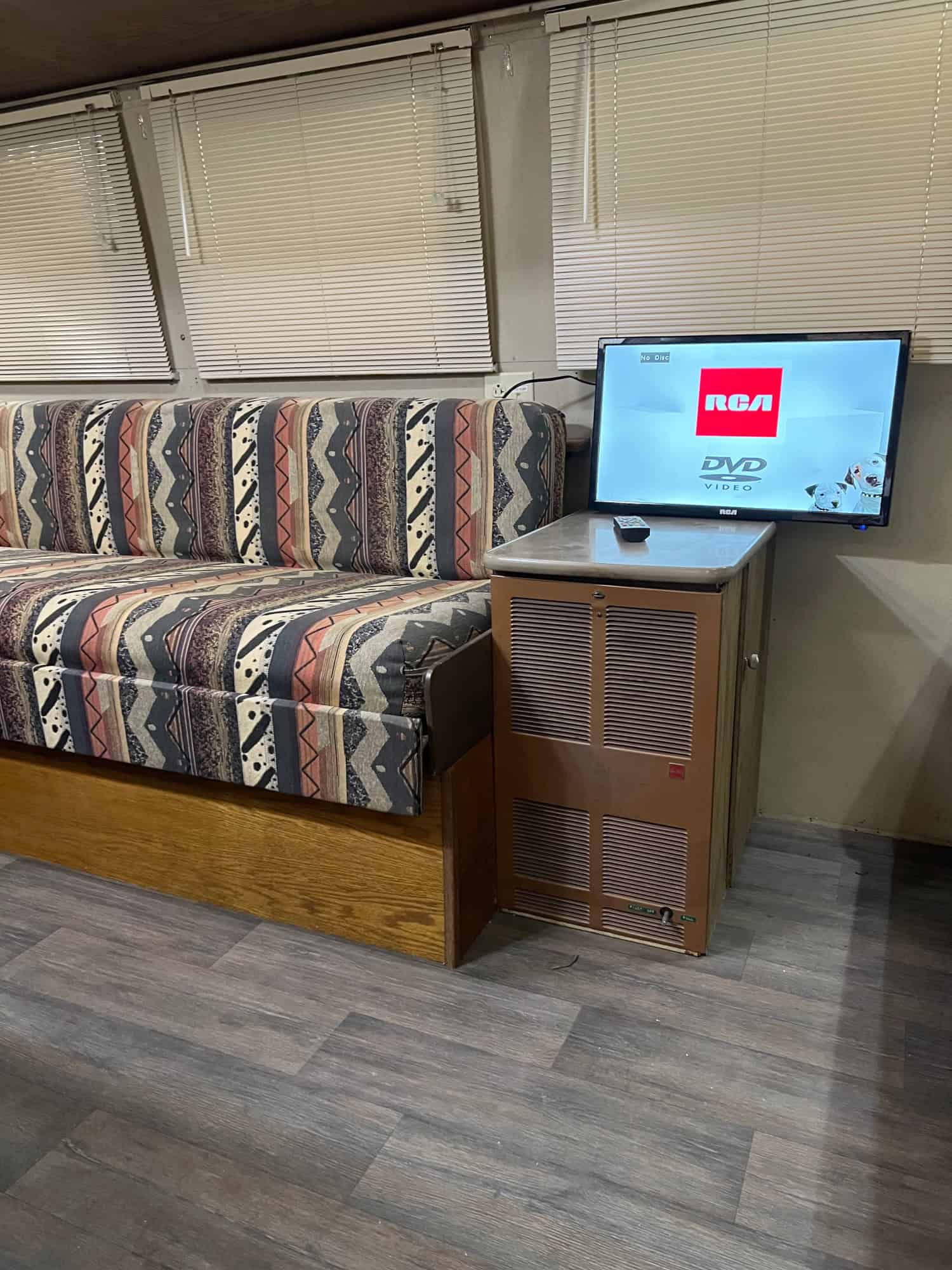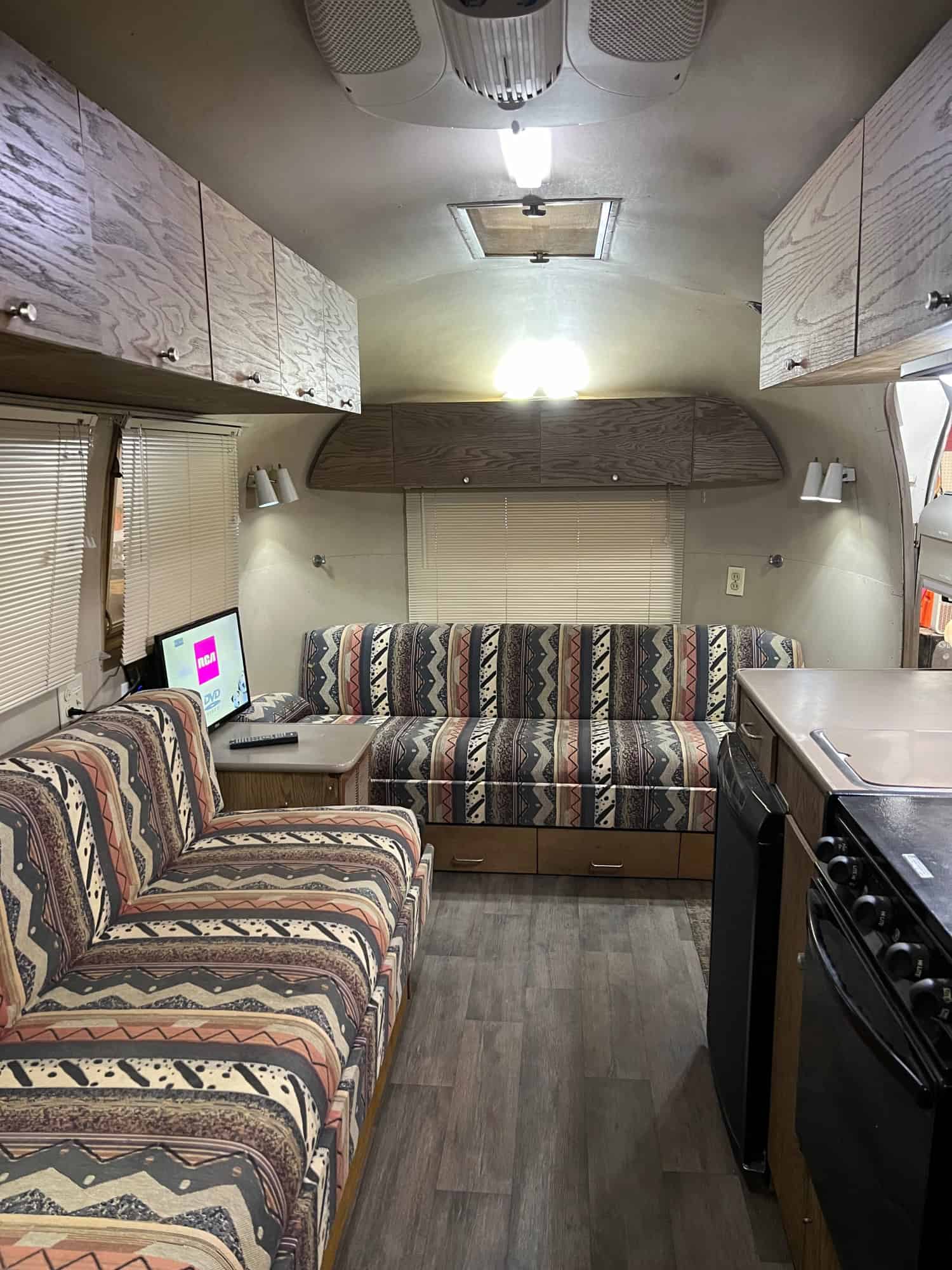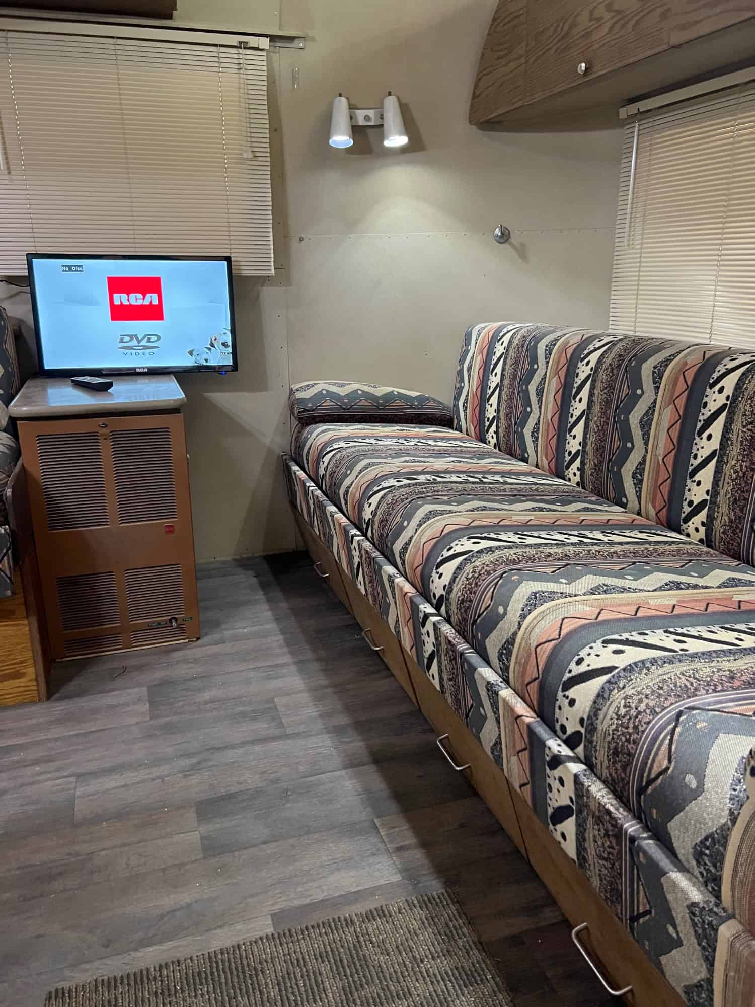 Upgrades inside and out including new roof air conditioning, LED lights inside and out, new 3-burner range and oven, new DSI gas/electric refrigerator, new toilet, new 6 gal DSI water heater, new plumbing & wiring, outdoor shower, new flooring, LP leak & CO detectors, TV with DVD can be used inside or outside, new power tongue Jack, original owner’s manual. Dry weight under 3000 lbs