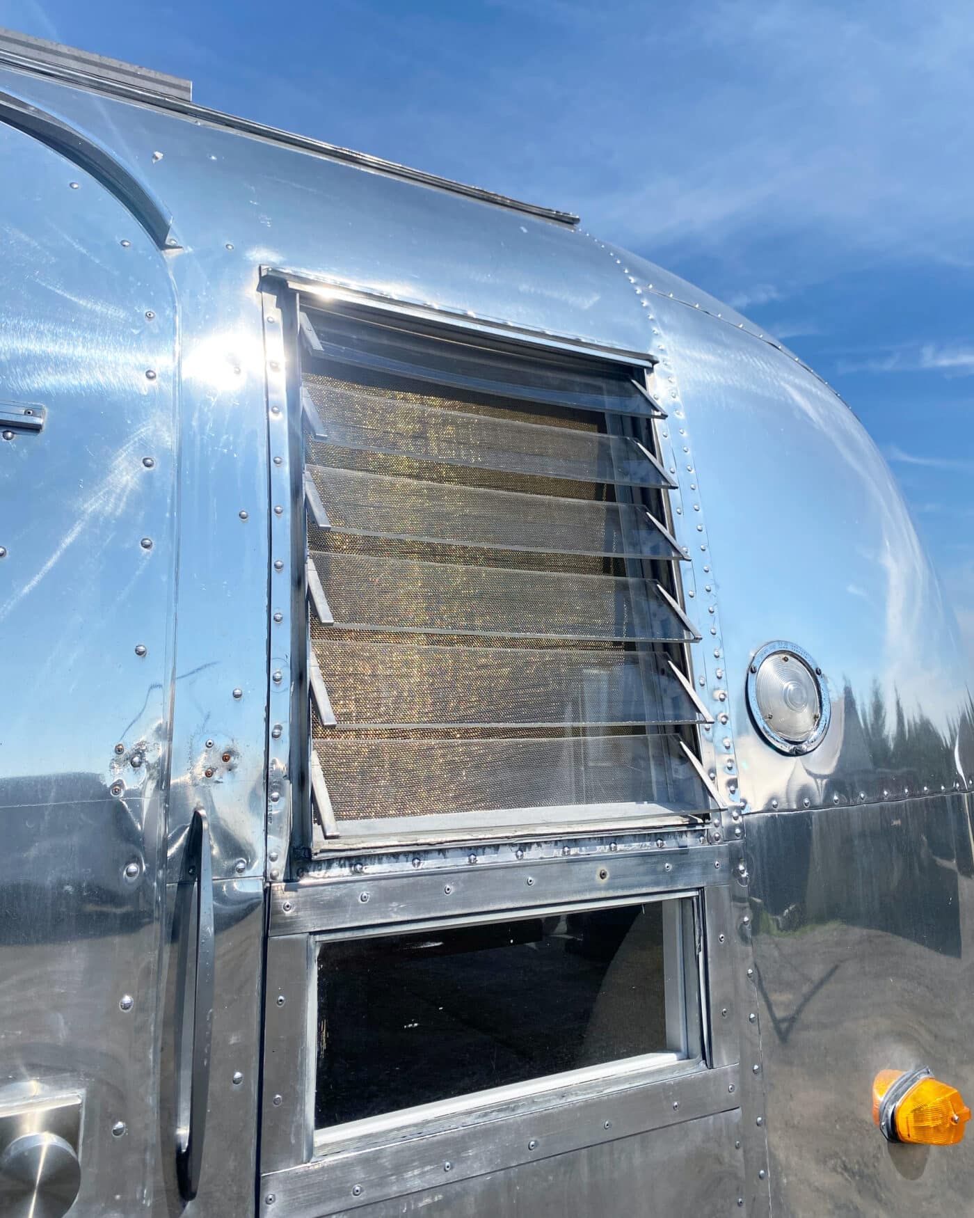 We kept and repurposed the original compartment that was at the front of the airstream for extra storage, all emblems on the trailer are original, keeping the original stairs, replacing multiple window panels with new tint and high quality metal gold screening. The entire interior has been professionally painted to a white shade and the exterior has been professionally polished.
