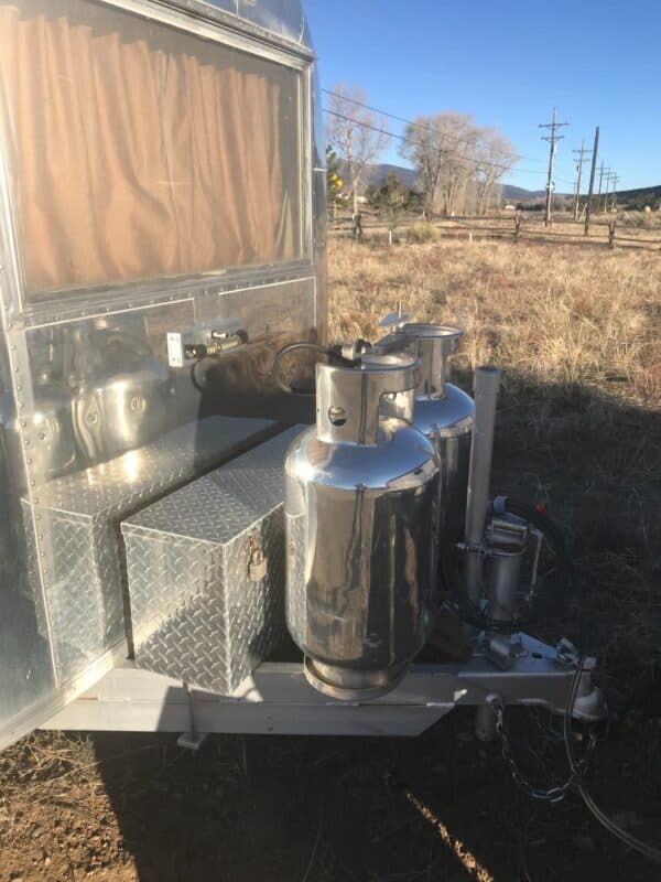 1965 Airstream Caravel in good condition located in Buena Vista, CO. Purchased 10 years ago in Chandler, AZ. The previous owner in Arizona kept a meticulous notebook on all updated restoration items which included: Custom awning, custom battery box, solar charging system for off grid camping, AM/FM Radio w/ CD Player, decorative Moon tire rims, new toilet, new rubber torsion axle, new water heater, new 7 1/2-gallon polished propane tanks, leveling gauges, etc. In 2015, at Timeless Travel in Denver, CO, the original air conditioner was removed & a vent/fan was installed. Also, a triple locking system was added to the door. Our 1965 Caravel “Baby” has been here in Buena Vista, CO for the last 10 years. Only used occasionally by our grandchildren in a dry camping mode with no use of water, toilet, electricity, or propane. Also, for the last 10 years not taken on any out-of-town road trips or pulled down the road. In storage, includes 2 tables and a brand-new rim & 10 ply spare tire. *See new lower price $25,000.
