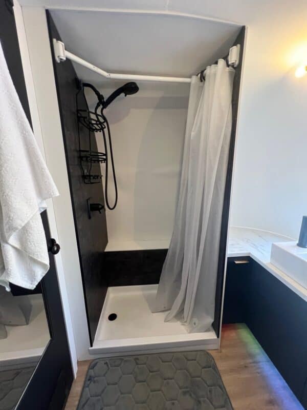• Spacious Bathroom: Fully functioning bathroom with shower and toilet