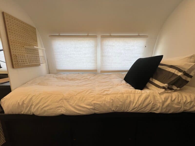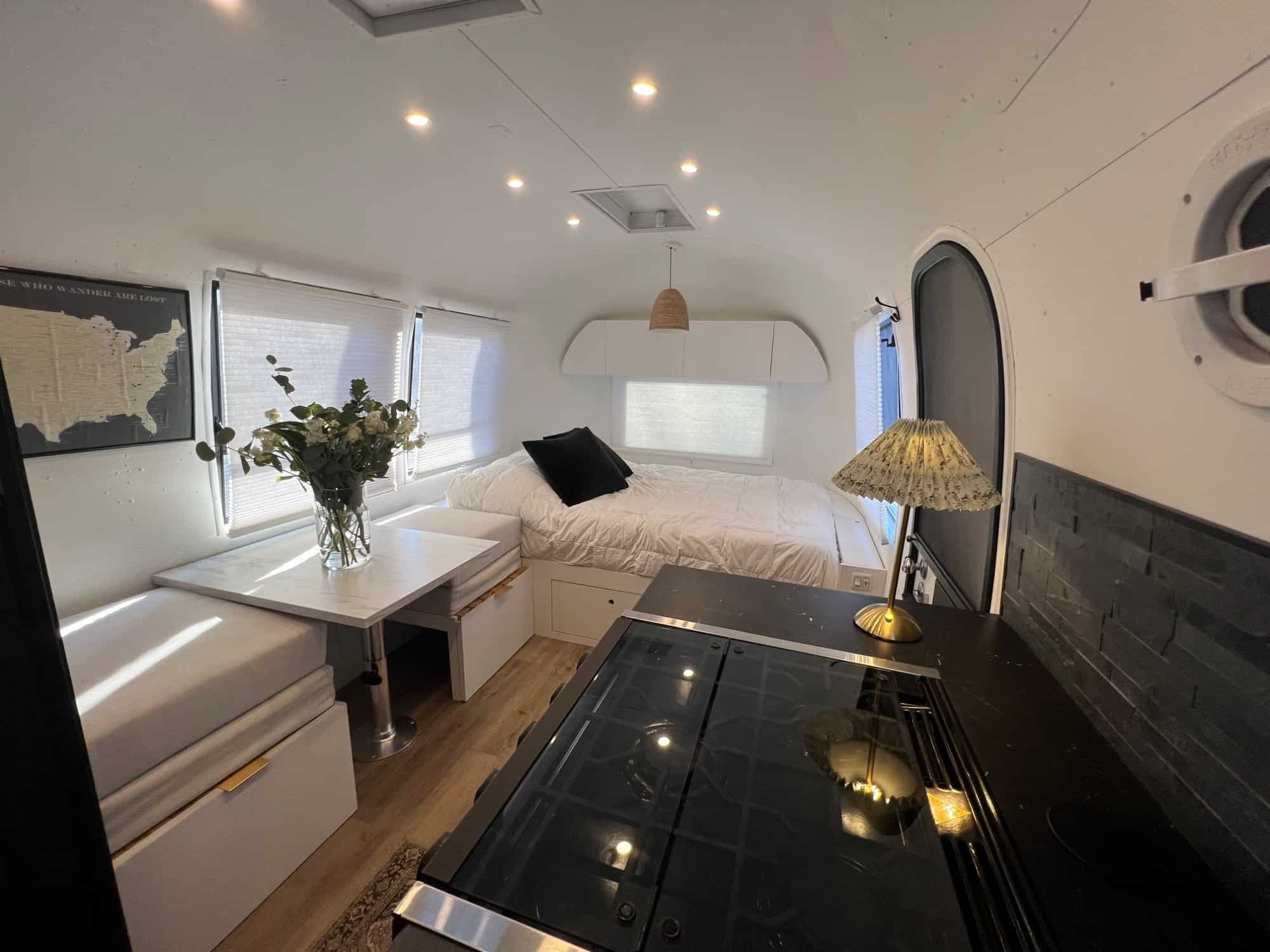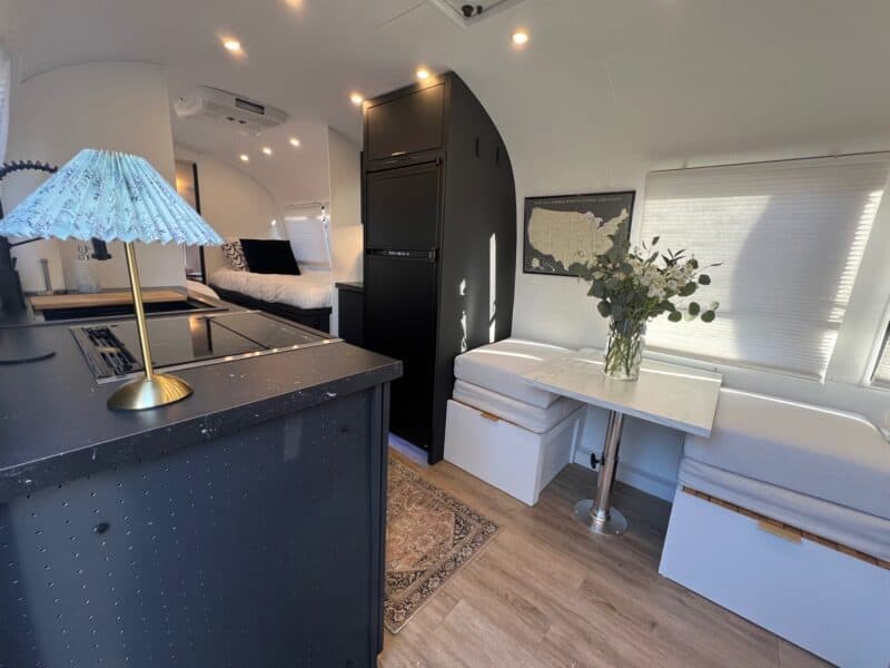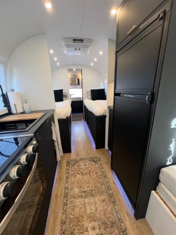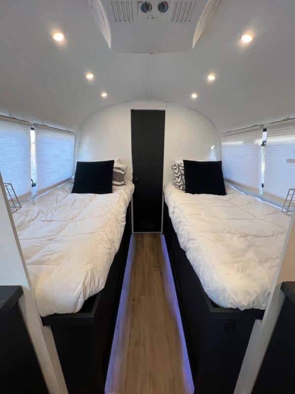 • Cozy Sleeping Areas: Comfortable beds and clever storage solutions make this Airstream your ultimate home away from home. Sleeps 4 – 1 full size mattress and 2 (almost) twin beds.