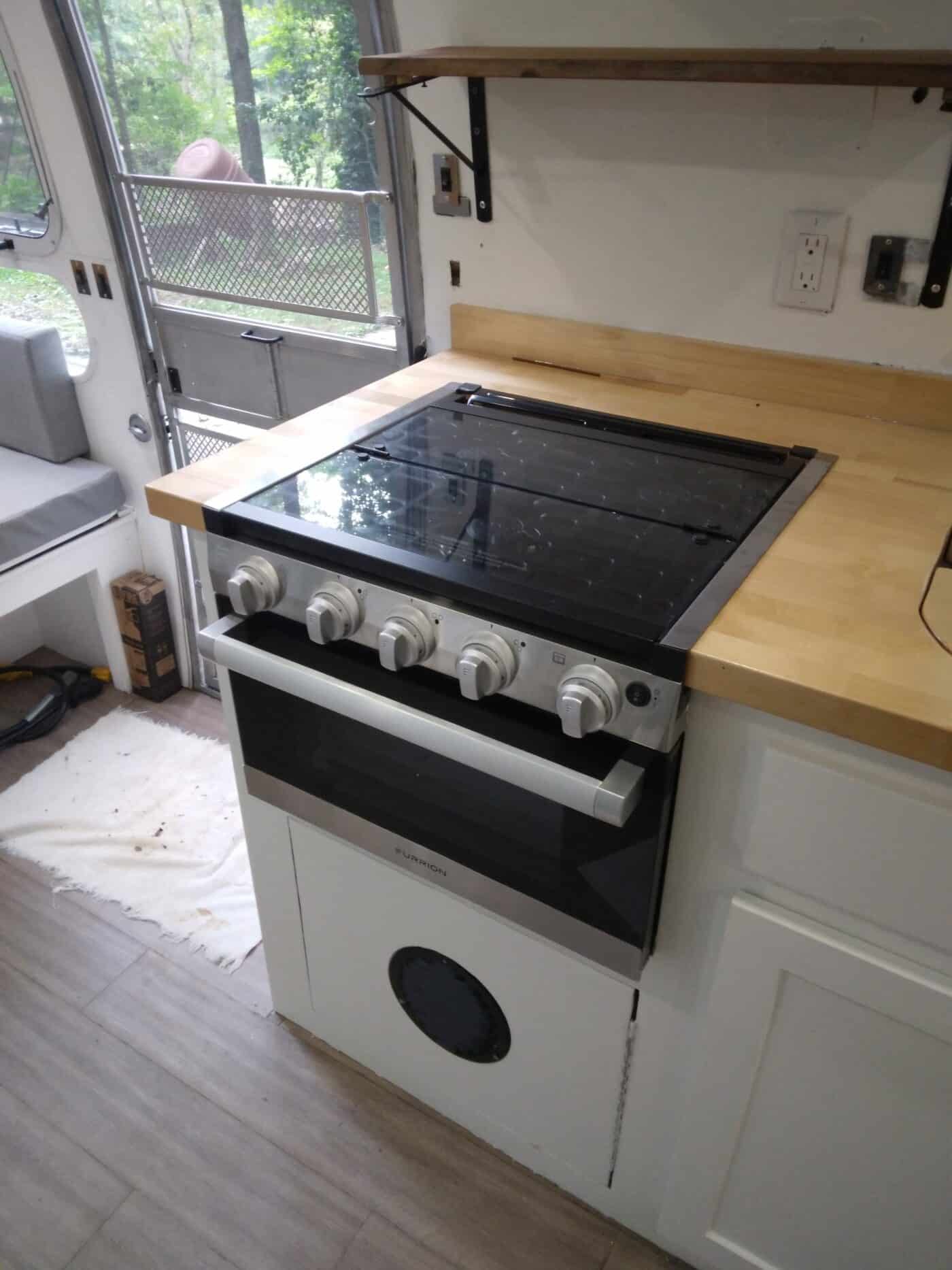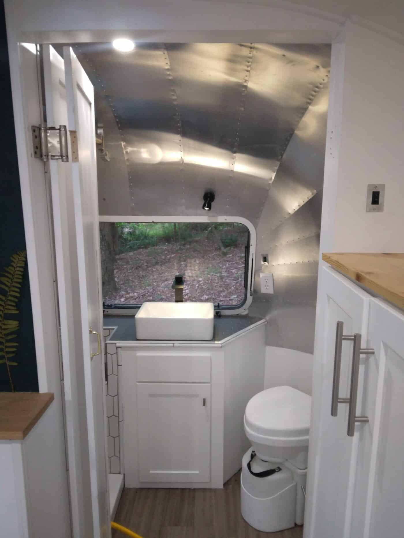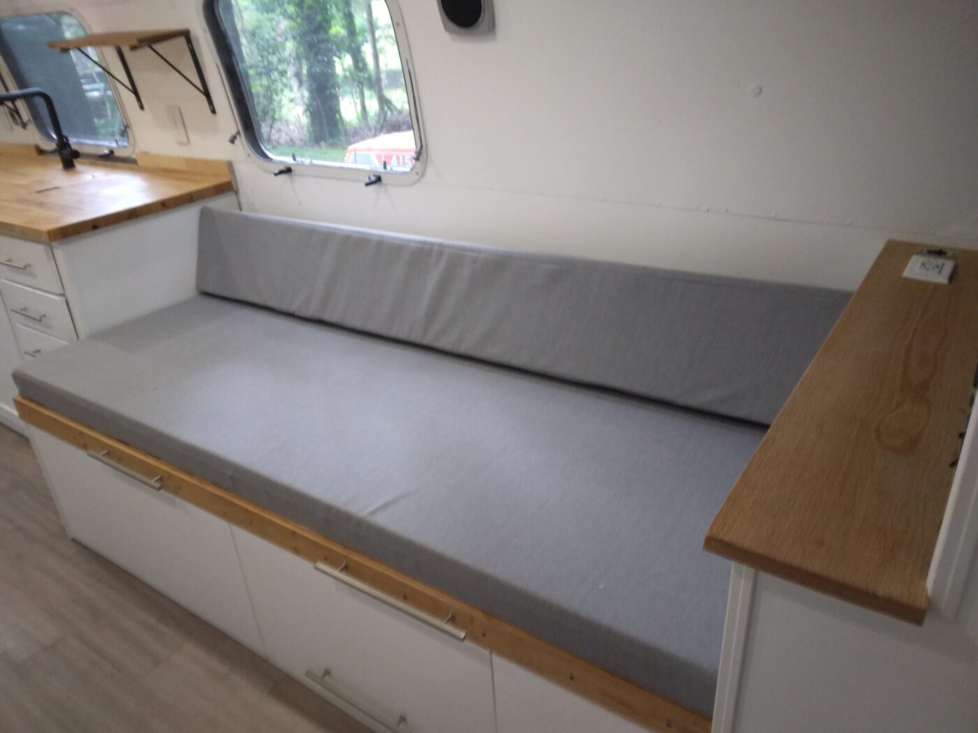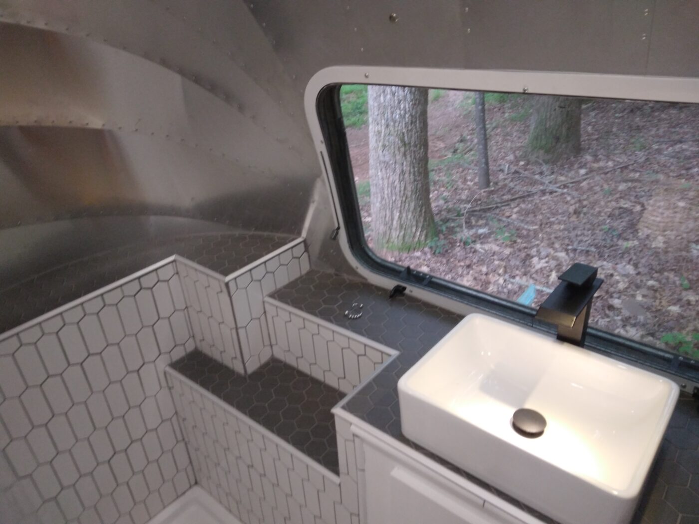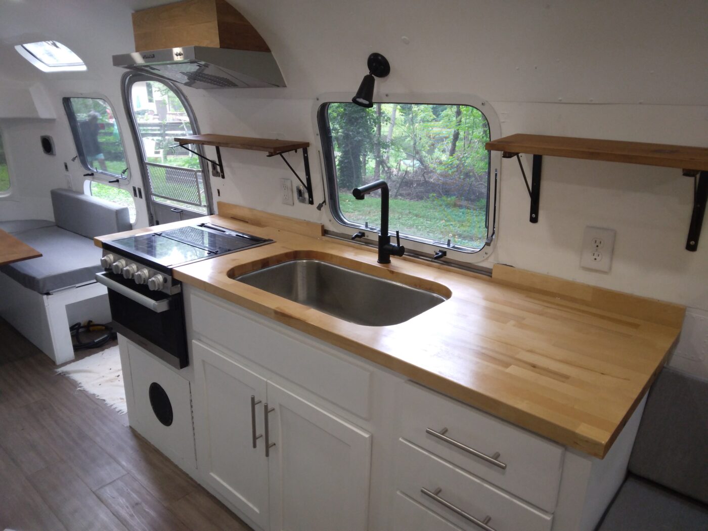 Completely gutted and built out (electrical, plumbing, etc) by the previous owner. Welding repairs were made when gutted and entire frame coated with rust preventative. Every seam and rivet sealed behind walls (interior sealing). All new subfloors were installed. Trailer fully polished. I had previous owner install brand new Renogy 2000w Off-grid Converter at time of purchase in case of need.