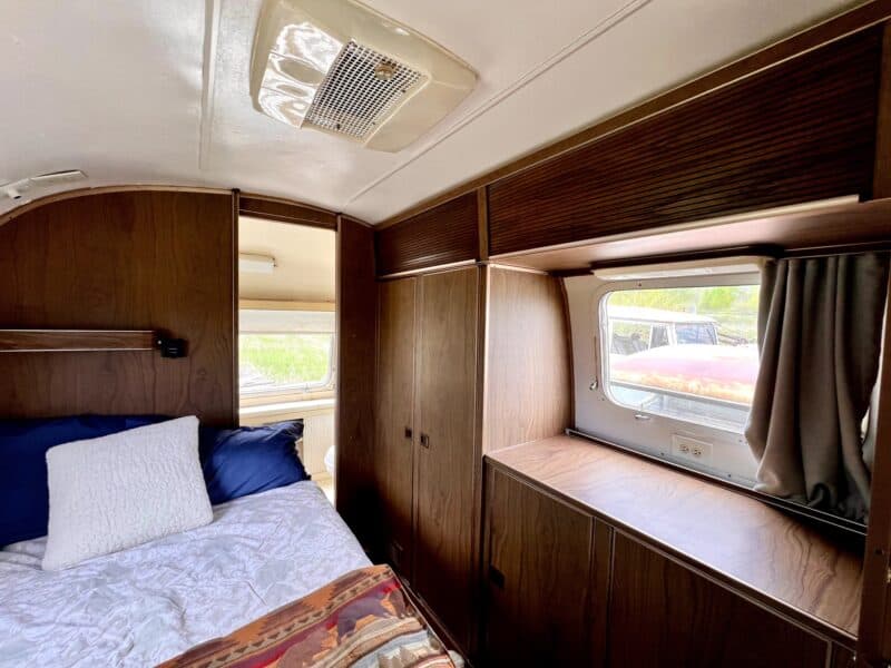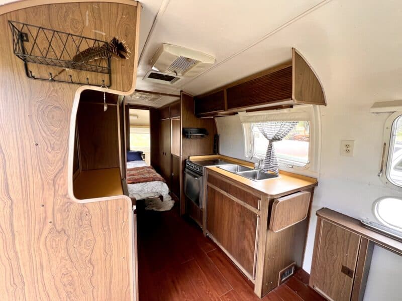 1972 Tradewind Land Yacht in great shape for its age. No leaks, mostly original interior but electric and plumbing updated in 2020 at GT Vintage Trailer Works in Townsend, Montana. Brand new water heater, newer toilet and kitchen faucet. The front sofa bed had been replaced with a pull out trundle that turns into a king but we still have the original sofa cushions to be converted back. You could use it tomorrow or is a perfect up for a remodel with the expensive upgrades already done. It has a few quirks that someone handy could fix- some cabinets or latches could be fix/replaced and parts of the vinyl flooring are coming up. The stove isn’t connected and we’ve never used it, we also haven’t used the fridge or shower. It was winterized and serviced last fall, with fuses replaced and rear lights inspected, at Bish’s RV in Bozeman, Montana.