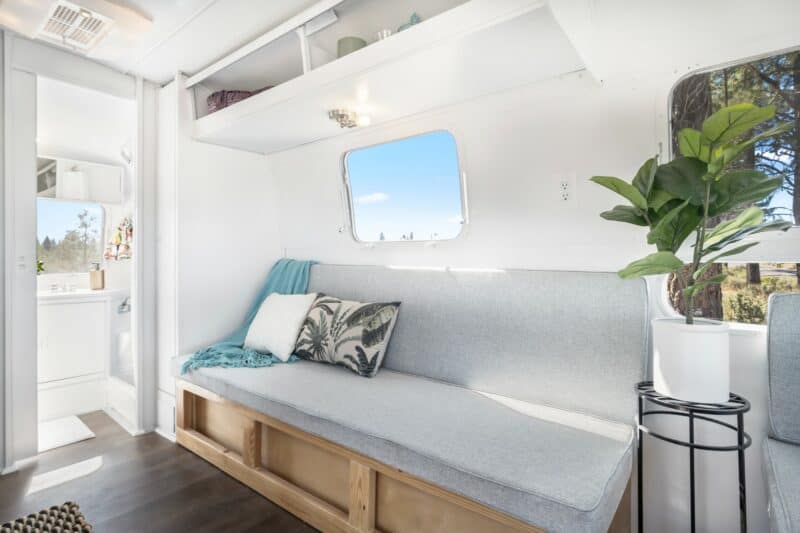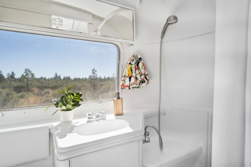 I am selling an updated 1973 21′ Airstream Globetrotter Land Yacht. The interior and exterior are modernized, functional, and beautiful. The aluminum skin is bright and shiny, and the awning is new, tires are brand new. The paint and vinyl flooring are brand new, new PEX plumbing throughout, shower pan and countertops are refinished, updated Coleman AC unit that blows super cold air, new Olympian catalytic propane heater, updated Norcold propane/electric refrigerator, new Atwood three burner stove plus oven, and new light and plumbing fixtures. Includes new dinette with ample storage that converts to a full bed and middle couch that converts to a twin bed, both with brand new upholstered cushions. The trailer has an incredible amount of storage and functionality- it could accommodate an adventurous family of four, and it is extremely light and easy to tow. I have listed the complete specifications below. Sold with the original manual and a clean Oregon Title.