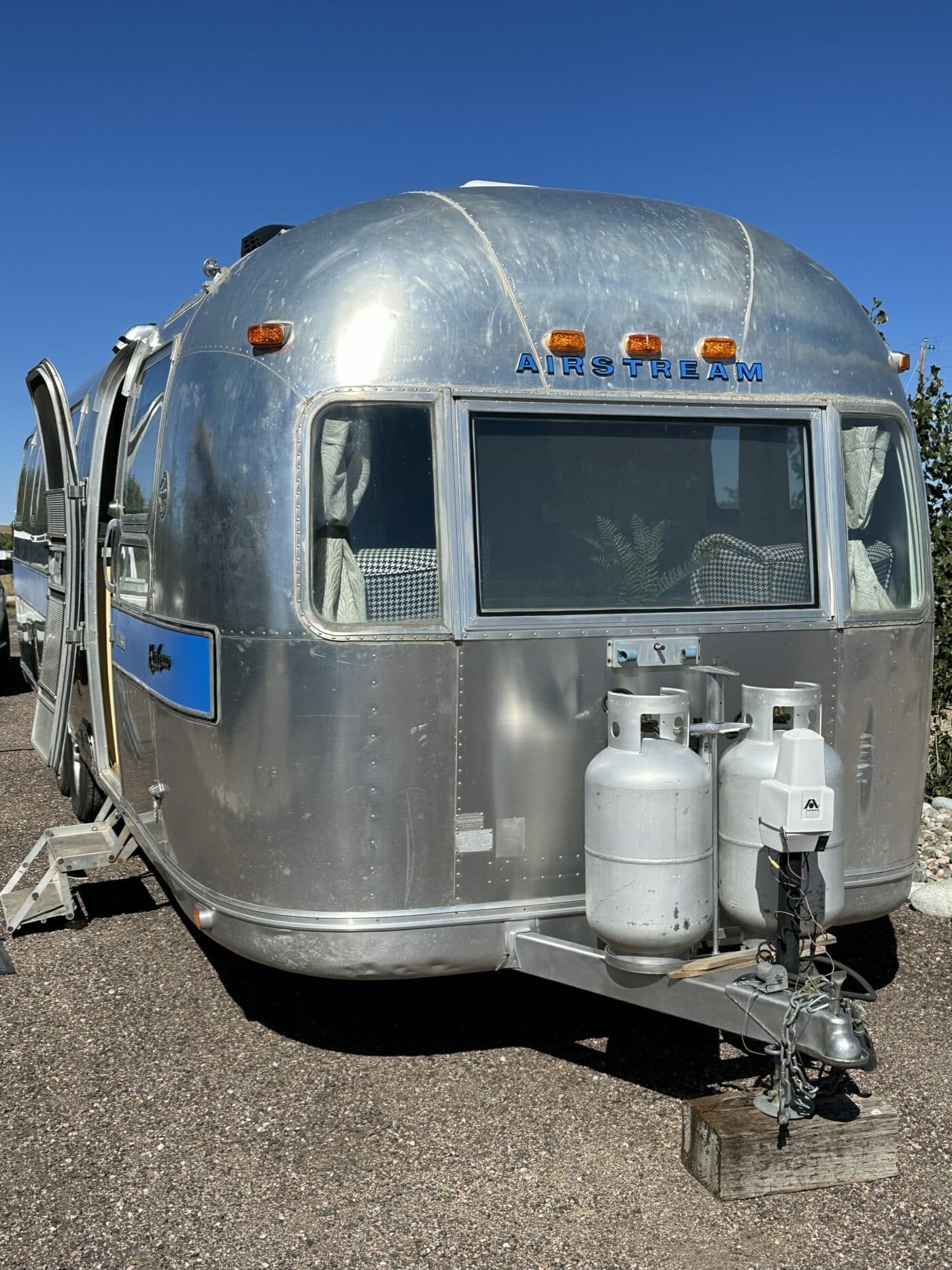 The exterior shows it’s vintage with minor body dents and the infamous spotty finish, but it holds its classic charm none the less. No awning but could be easily added. Pulls straight and true with new brakes. Updated LED marker and tail lighting. New power King Tow Max STR tires with less than 8,000 miles on them, and original aluminum wheels.