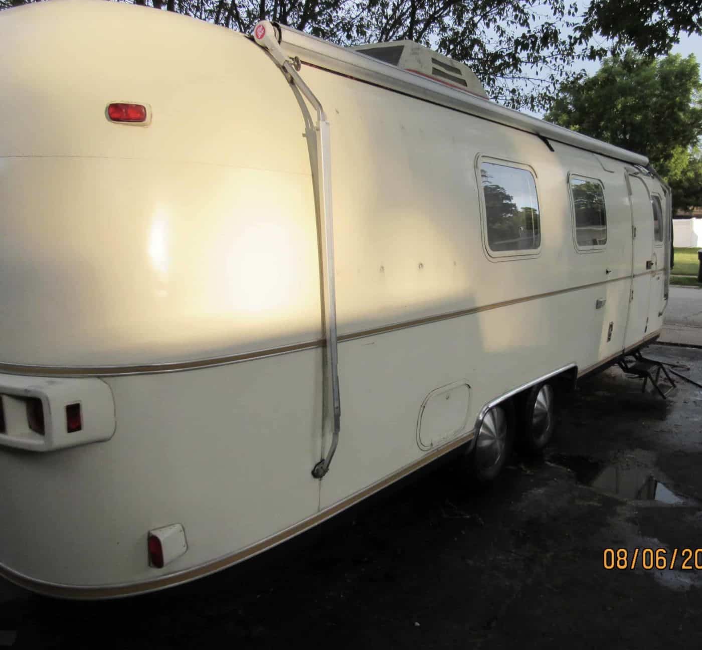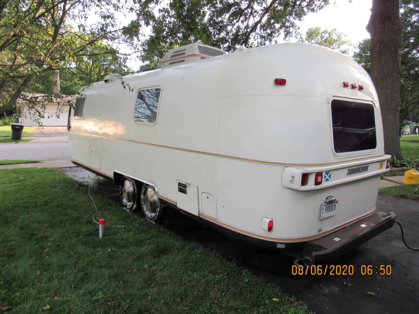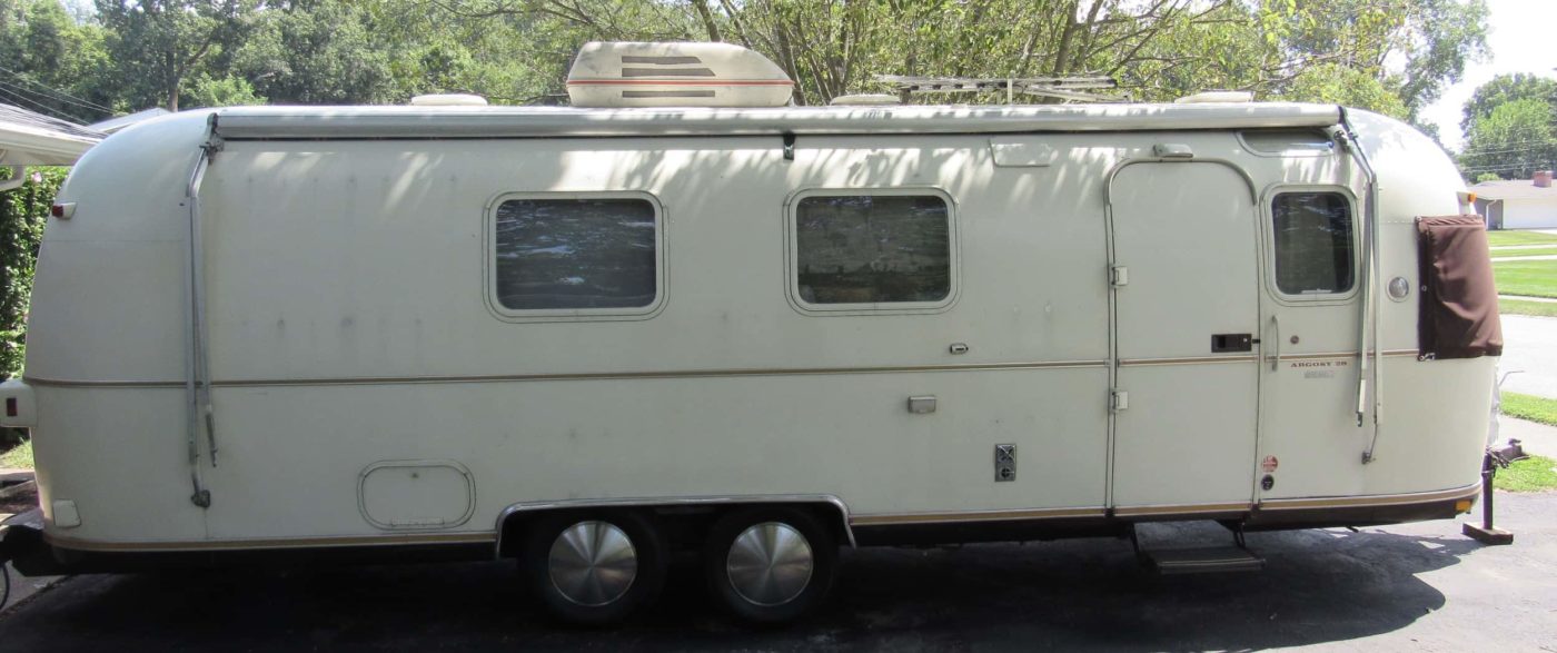 1976 Airsteam Argosy. To many extras to list. Stove top recently re-enameled (FIRED not paint), boomerang Wilson art counter tops, all original cabinets/table etc. Working furnace, AC, Fridge, stove, oven. Her history; we’re 3rd owner. 2nd owner bought from someone that had kept her in a barn but but wasn’t using her for 30 yrs! 2nd owner went on to use her for summer vacations for 10 yrs. We’ve used & LOVED having her but are moving out of the country & cannot keep her. The front wrap window is perfect. I forgot to take a picture without the rock guard. Rock guard itself is a great bonus as it’s custom & really nice. Awning is in great shape. Original polished aluminum 40 gal propane tanks (recertified). Also neglected to take a photo of them uncovered. Baby moon hubs but we kept originals. Rear bathroom. Twin beds in center. There are original bunks that we do not set up but we still have them! Comes with everything you need to go including Melanine dinner set, toaster, folding chairs….We literally have everything, TV, hoses, cords, extra’s. More pictures coming soon. So rare to find original interior in such fantastic condition.