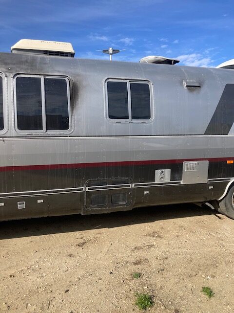 Model 370LE, only 31 made in 1189. Has onboard generator, exterior awning was in good condition. Unfortunately there was an engine fire as seen in pictures. Terrific restoration project for someone looking to personalize or completely restore this rare motor home to its original condition. There are several examples on the internet on reconfiguring the interiors for a different look entirely. These coaches restored are valued from 75k to over 100k.