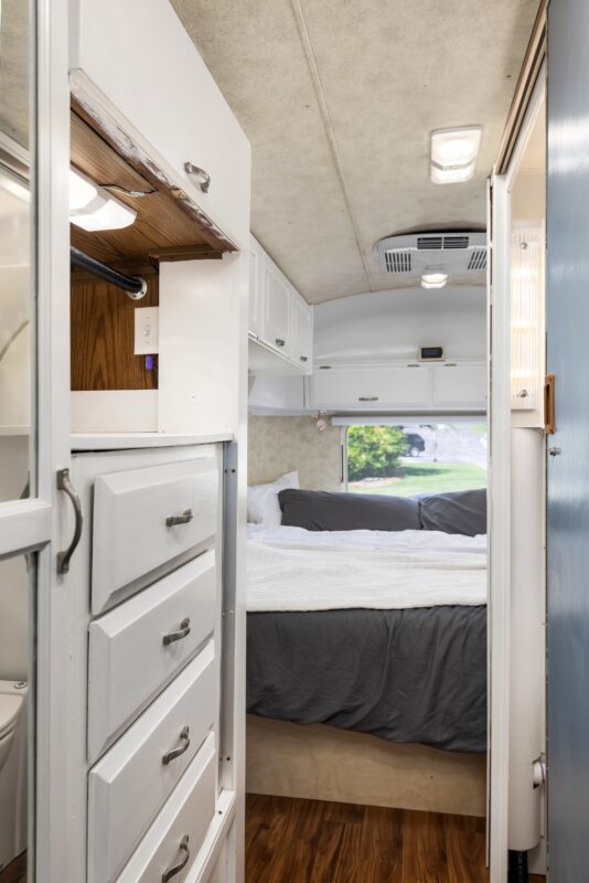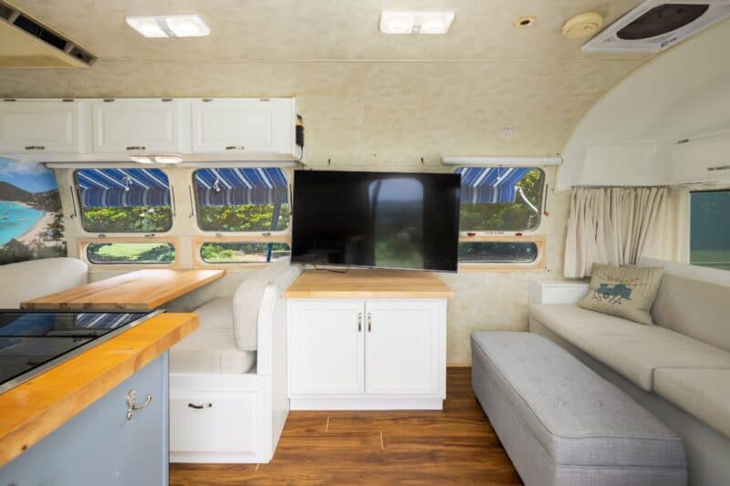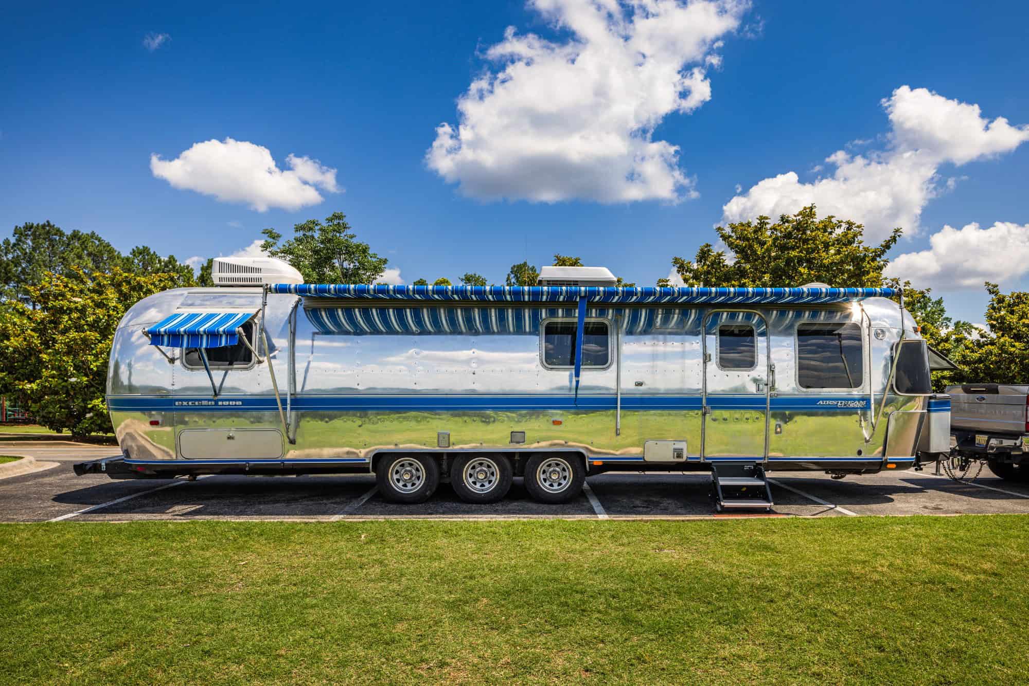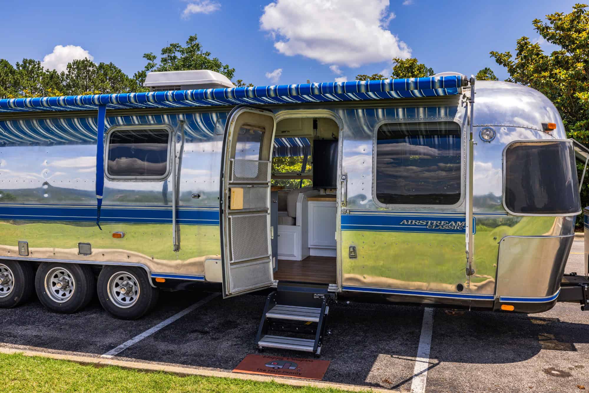 ✨ Polished Exterior with a brand-new blue vinyl pinstripe, capturing that iconic Airstream glow.