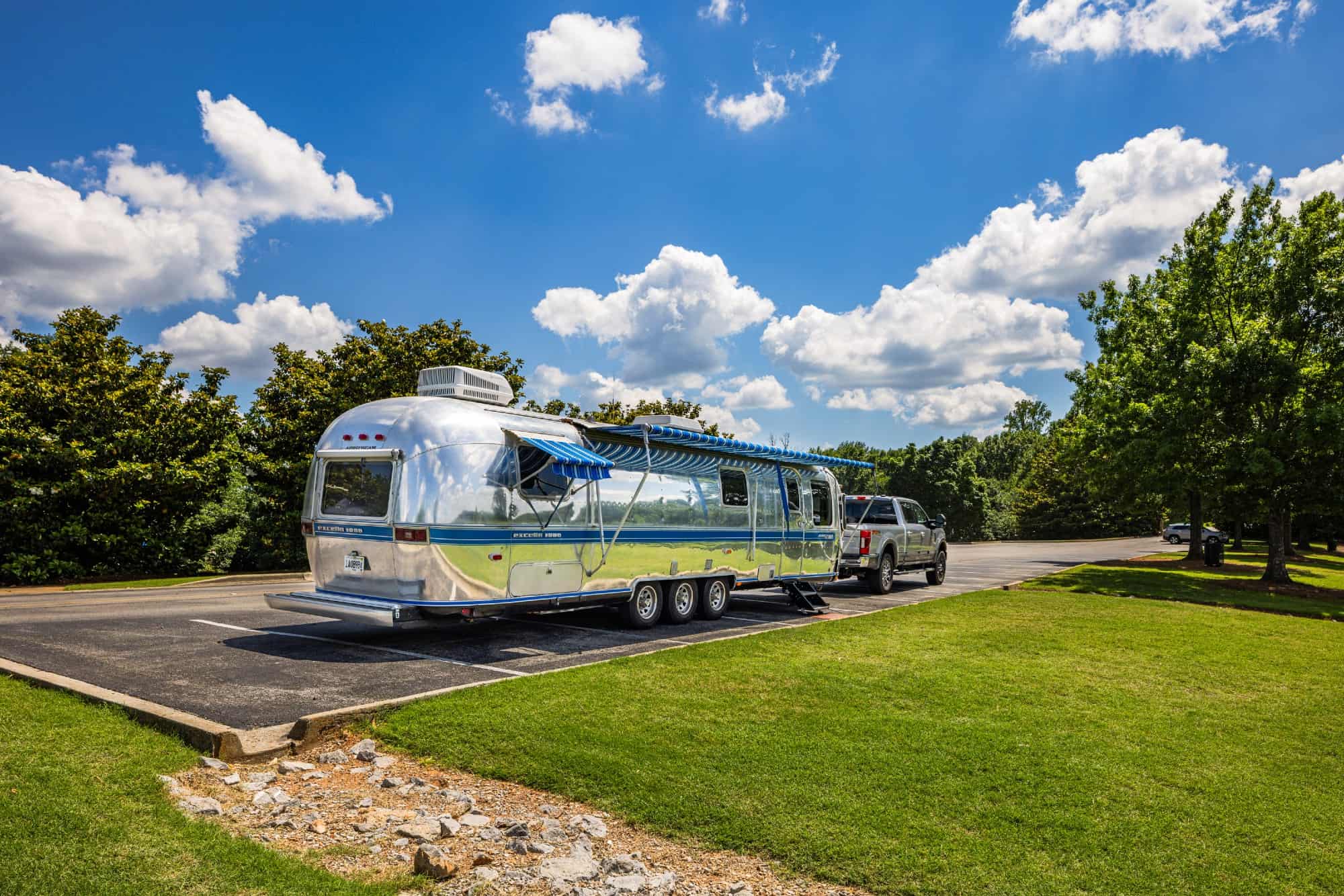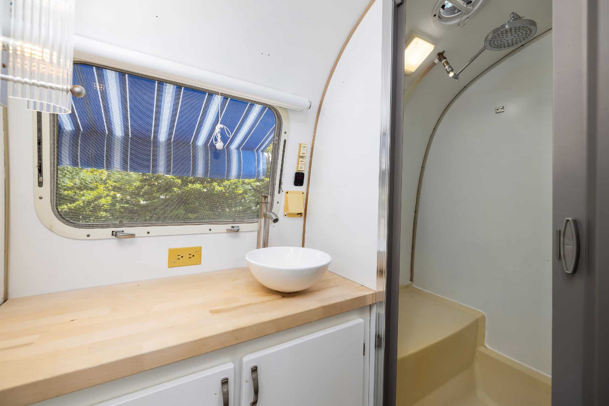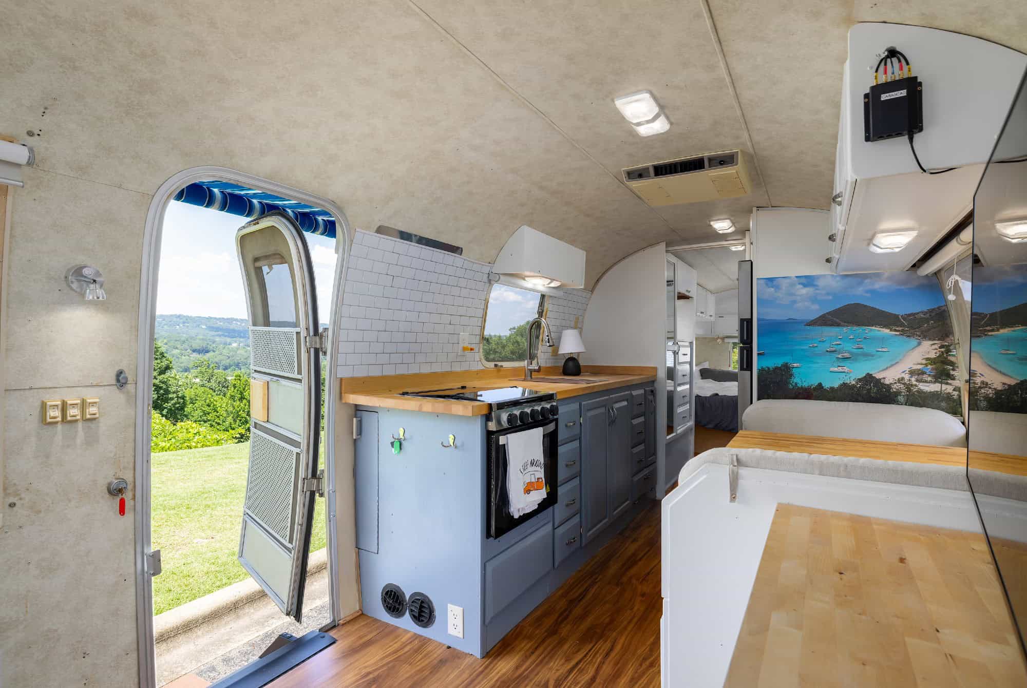 ✨ Polished Exterior with a brand-new blue vinyl pinstripe, capturing that iconic Airstream glow.
