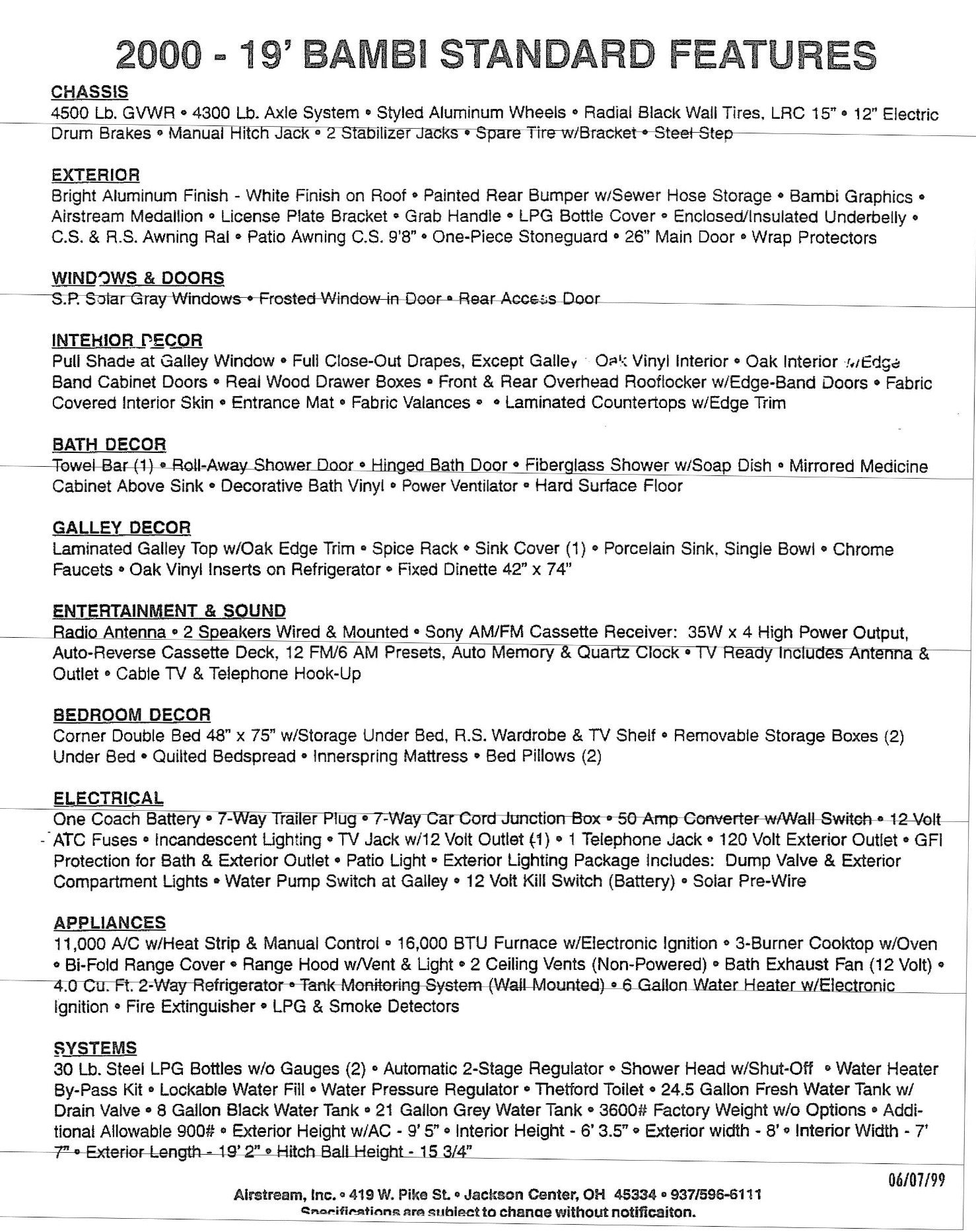 Our 2000 Airstream Bambi needs a new home, we have outgrown it. We have made several improvements to it over the last four years, including new vents, all new water lines, new tires and brakes. All the appliances, fans, A/C, and heaters work perfectly. There is no rust and the bottom has been sealed and repainted within the last 5 years. One of the awnings arms needs a new hook at the end, but it still sets up fine. No major dents or scratches. It sleeps 4 comfortably and the front seating area turns into a second bed. This Bambi has been well taken care of over the years and is ready for the road!