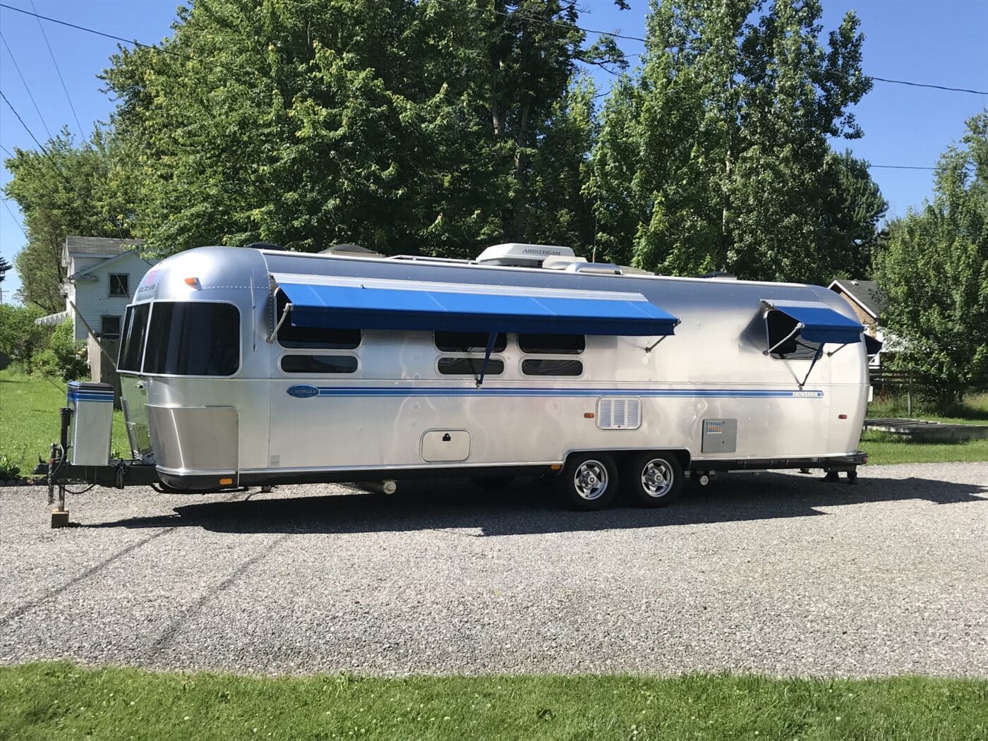 Exceptional condition, will not be disappointed viewing this Airstream. Used very little, nonsmoking and no pets and always stored inside of a garage. Spotless interior/exterior loaded with upgrades, awnings over all the windows, day/night shades, rear bedroom, center bath, front lounge with convertible dinette. Interior color is VINTAGE LEAF and still smells new when stepping up into the inside.