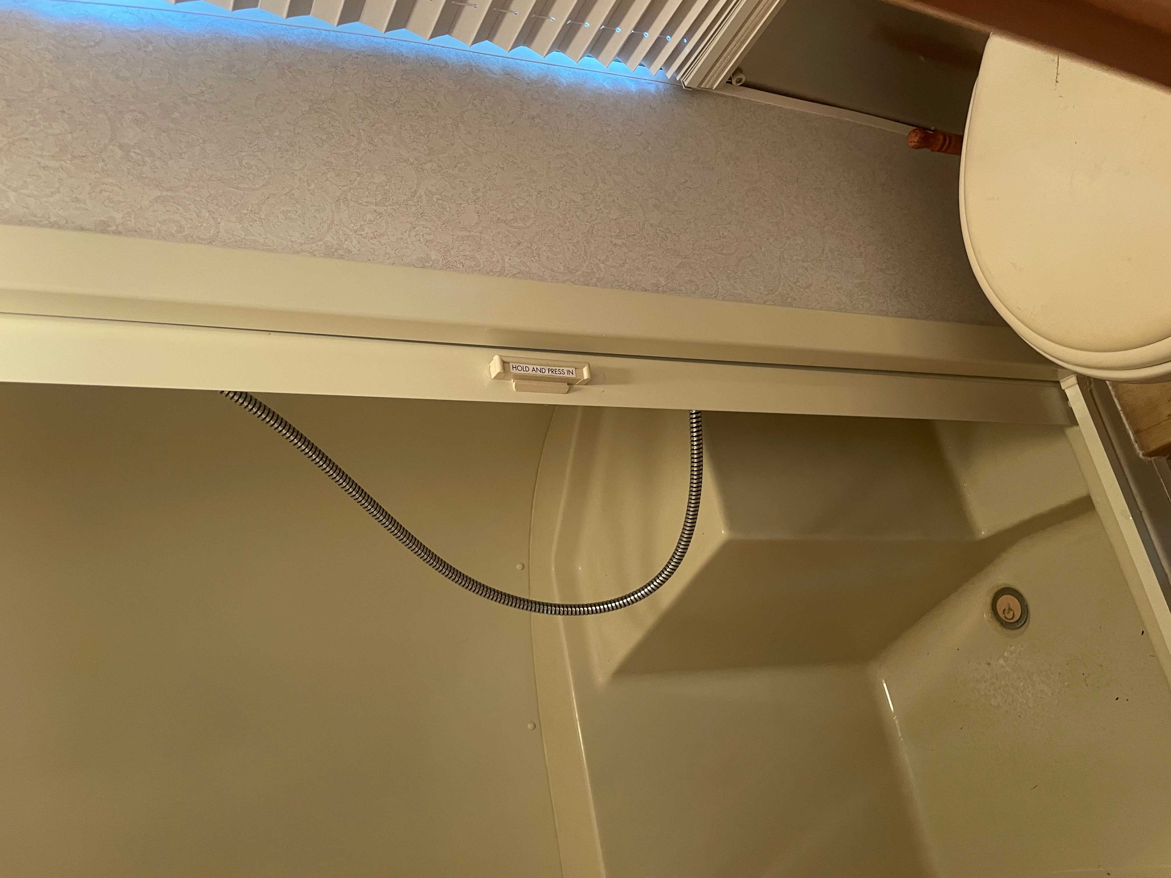 Bathroom Location and Style:: Rear Corner Bath and Shower – separate toilet and shower. Shower head and diverter valve replaced in 2022 at Airstream factory.