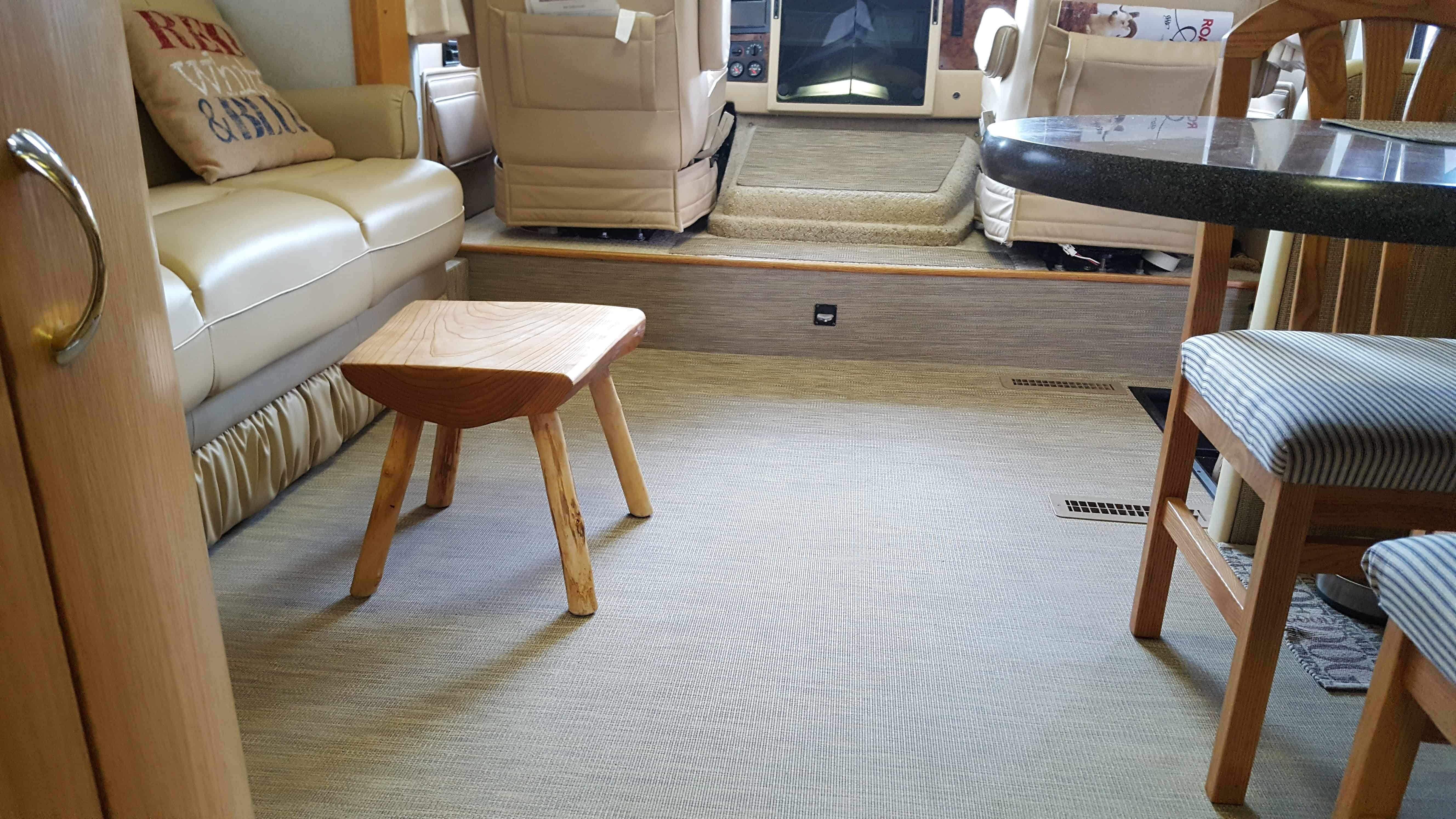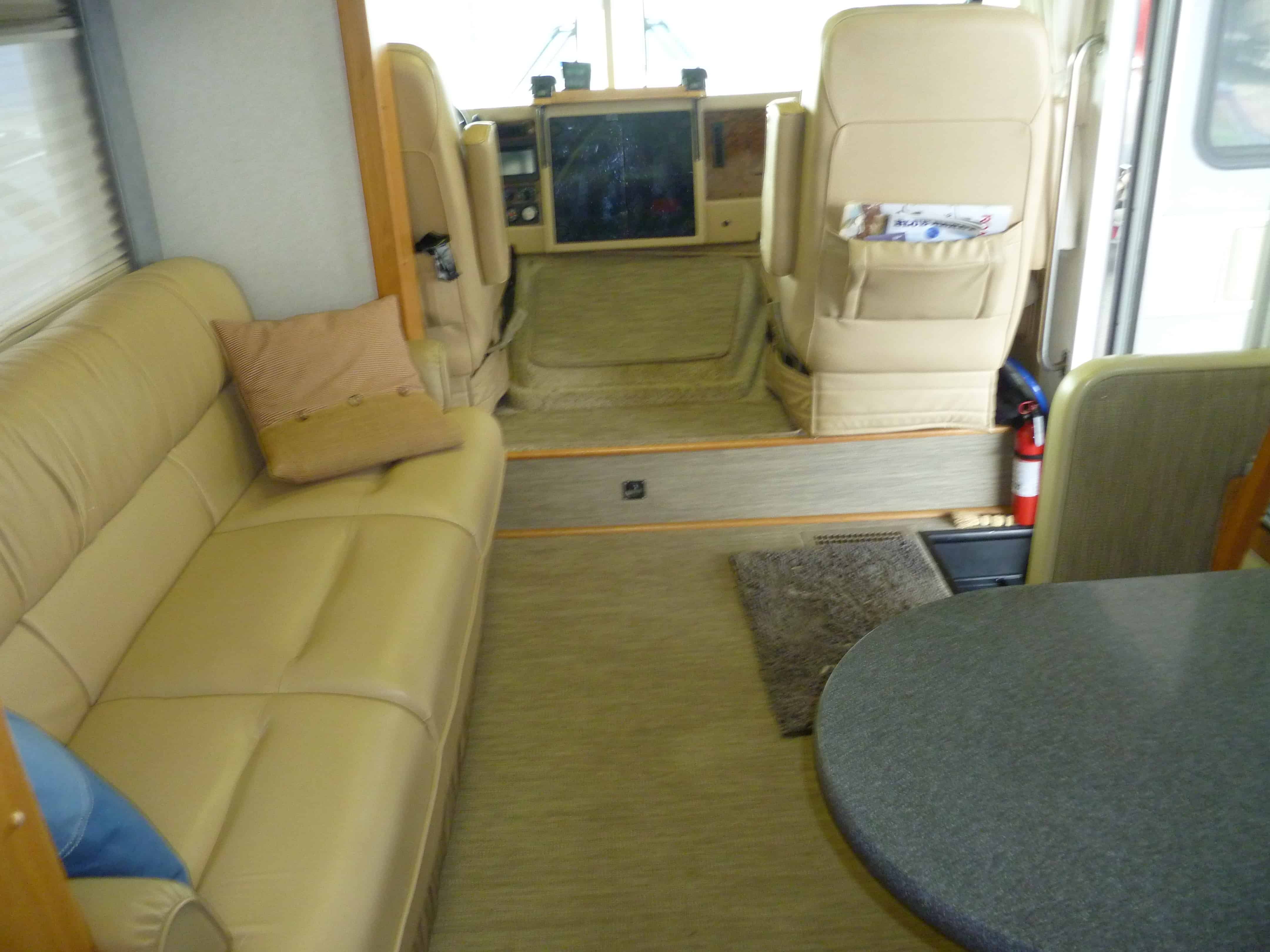 Luxury vinyl floor as used in all new Airstream trailers. Ultra-leather couch, folding down to make a double bed. Both captains and passenger chairs are fully swivel and reclining