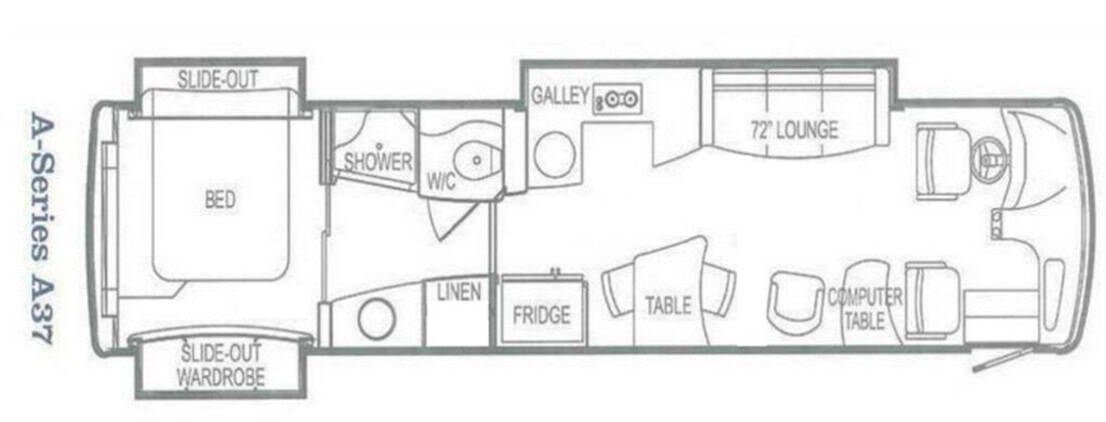 Our A37 is one of less than 50 of Airstream’s most expensive and luxurious motorhome ever produced. Its yacht styled interior has elegant lines, sumptuous fabrics, and gorgeous cabinetry coupled with all-electric technology including an electric cook top, residential 22 cubic ft refrigerator, convection microwave, and a 3000-watt inverter. Slide-out living and bedroom areas increase the interior space. Special touches such as Corian surfaces, brushed nickel hardware, a vessel sink, and a large shower with skylight are also included. Additional features include a dishwasher, hydraulic leveling system, Dish satellite receiver, and Dinette with leaf to comfortably seat 4, and solar panels.