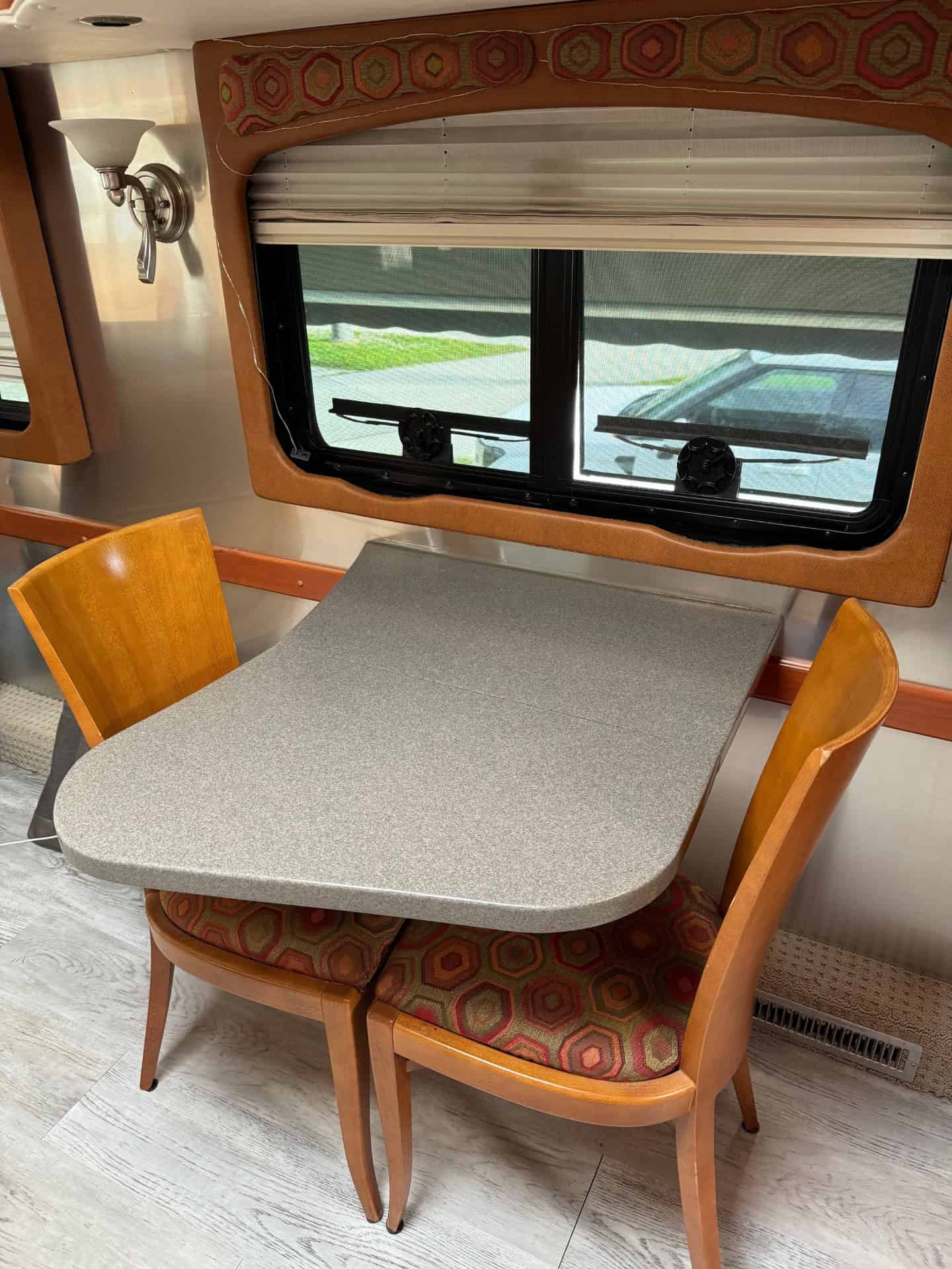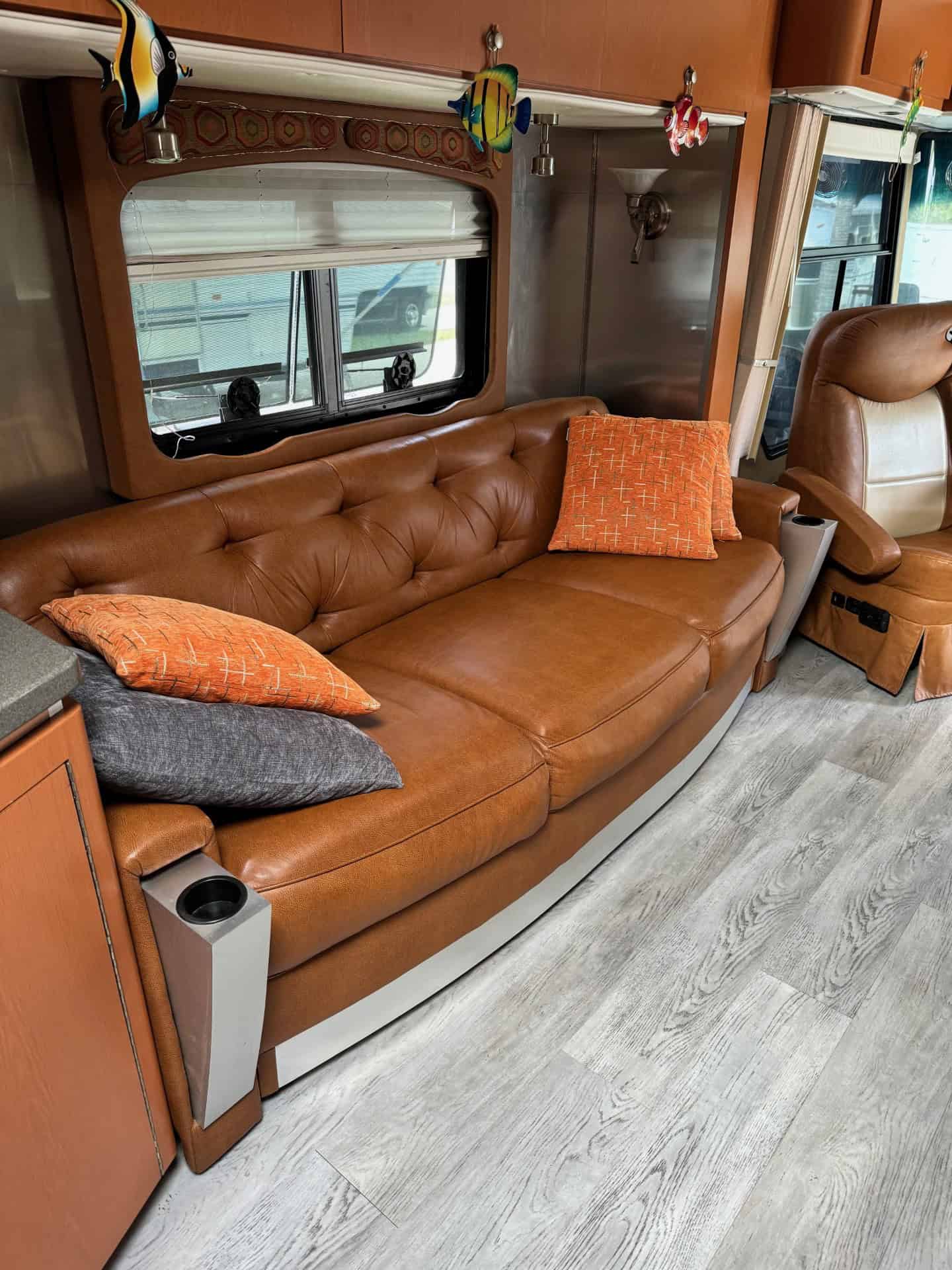 We have thoughtfully updated the coach with new windows, new air conditioners, new flooring, new fantastic fans, and new smart tv’s (50” in the front, 32” in the bedroom). The diesel engine (97,000 miles), mechanicals, plumbing and 12-kilowat auto start generator have just been serviced and are in great condition. The roof has been sealed and has no leaks. New Michelin X Incity RV tires were put on in 2022 and have less than 1500 miles. We would love to show our coach to you.