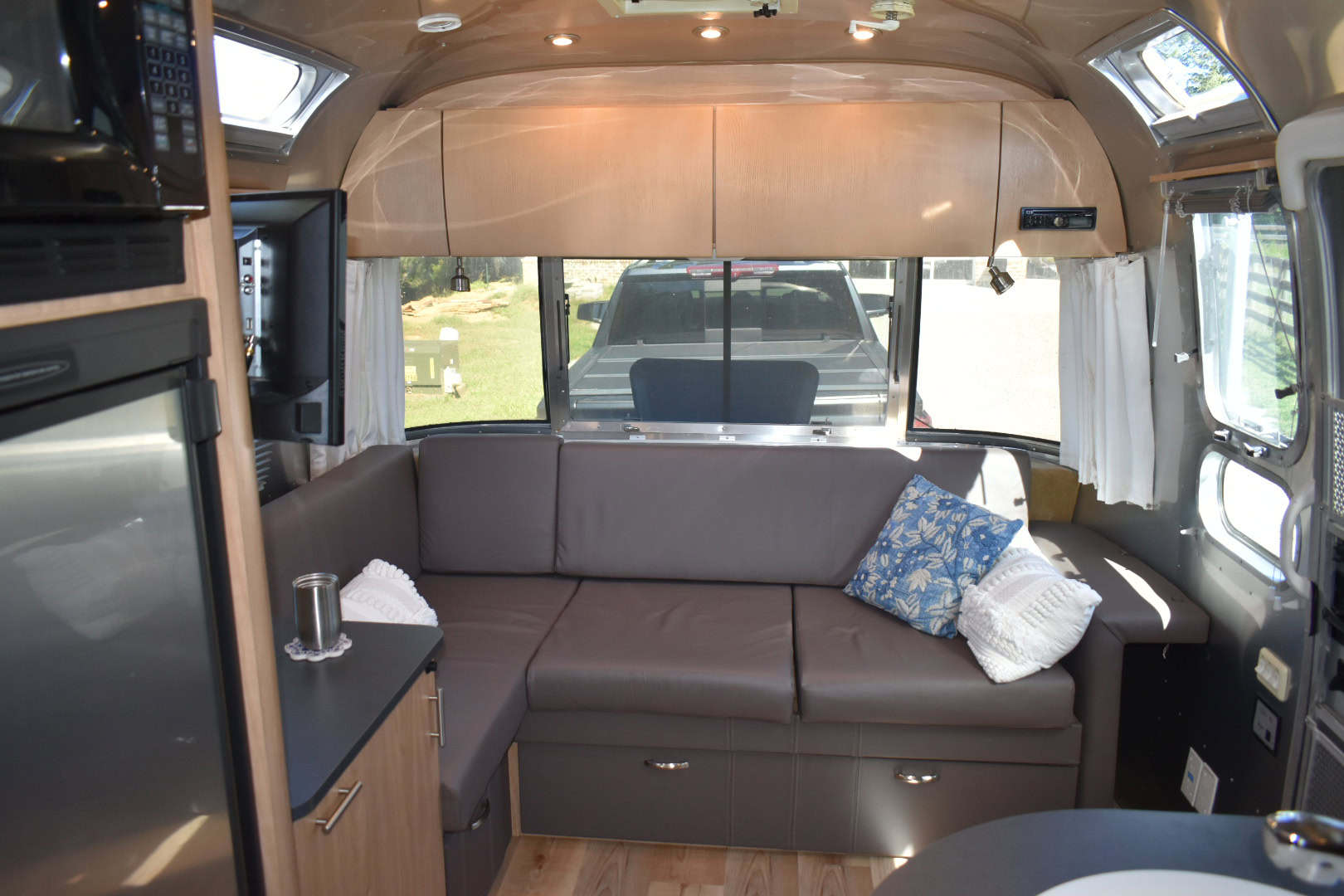 2007 Limited Series 75th Anniversary Special Edition 23ft dual axle open floor-plan, LED lights, 2 flat screen TVs, fantastic fan, Custom upholstery Soft touch Real Leather L couch converts to bed sleeps 2 adults, Sony sound system CD player 4 speakers, book lights over the bed and couch, special hide away dining/work table perfect for diner or work, plenty of storage cabinets throughout the unit. Above couch, kitchen and bed. More storage under the couch and bed also. Huge2 door dbl closet, sliding pantry cabinet and storage cabinet above. Never used LP gas stove with 3 burner cooktop, microwave, dual refrigerator lp/electric with ice cream freezer, heated tanks for colder weather Grey, fresh water and black tank. Has a tank monitor system and a Solar charge monitor -for the 100W solar w/inverter & two 12 Volt batteries, tv antenna, built in cable hook ups, LP furnace and 5G water heater, water filter, water regulator, 50amp and 30 amp voltage regulator and 30ft cord, EZ tow hitch and swag bars, new electric Jack 2024.