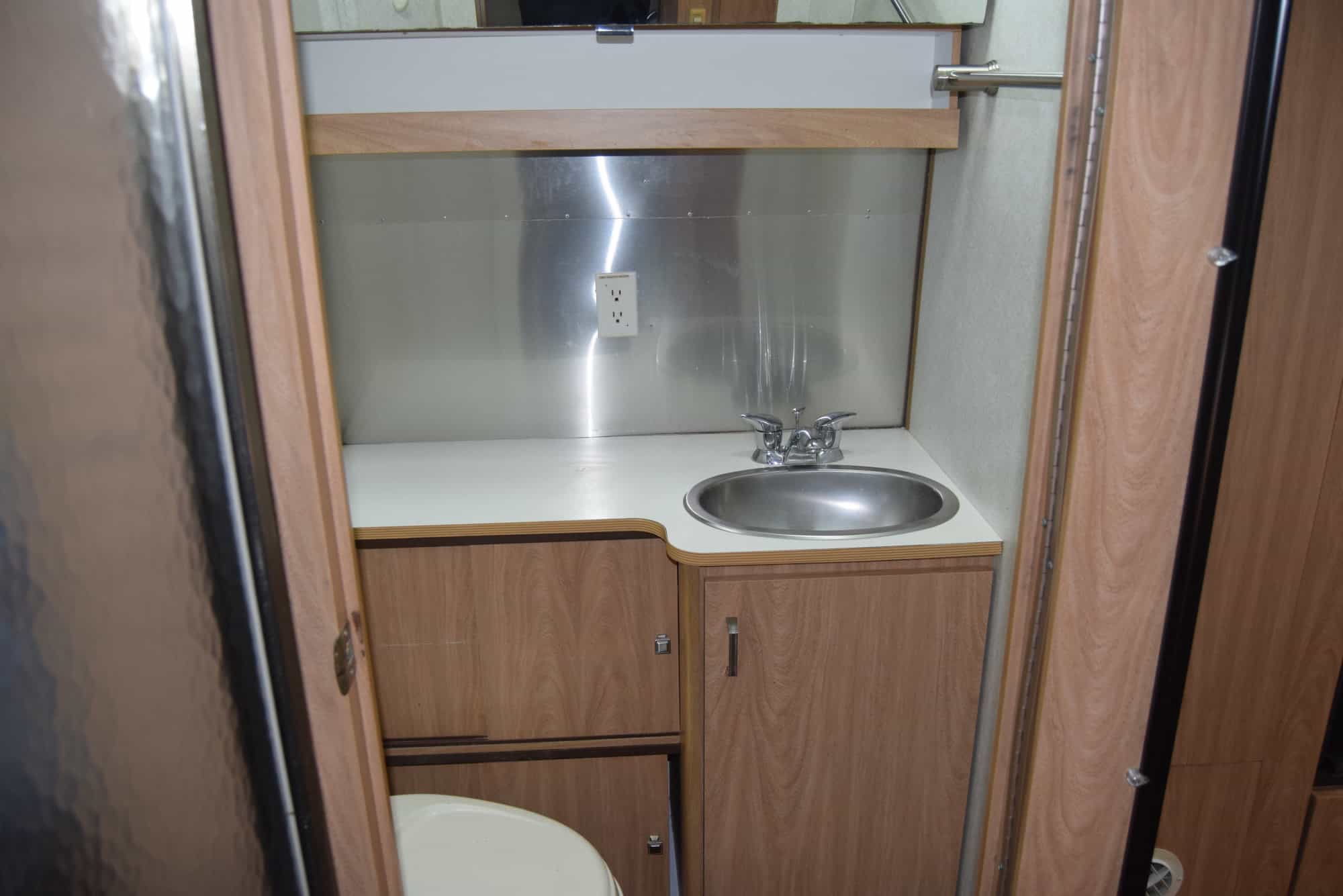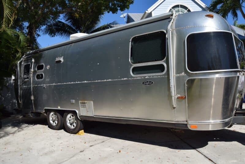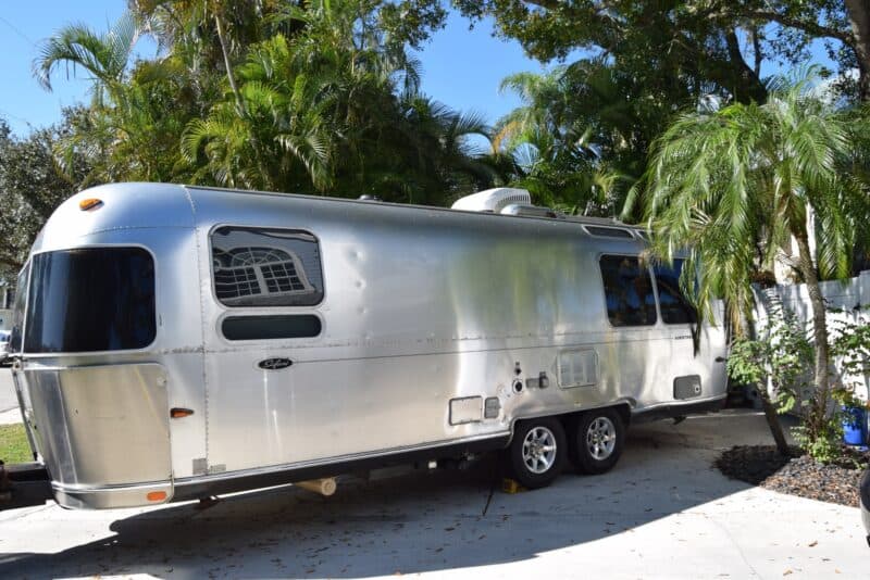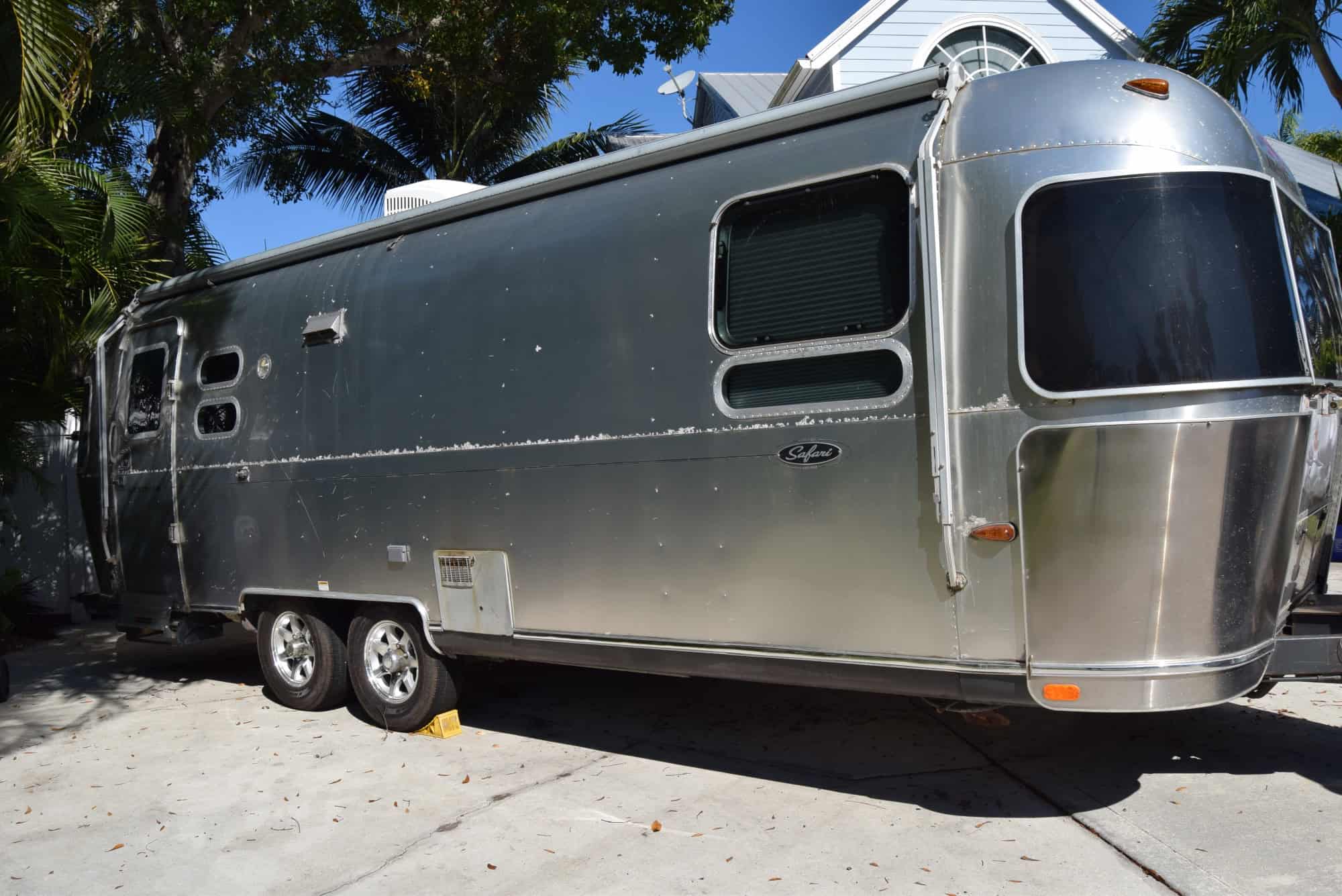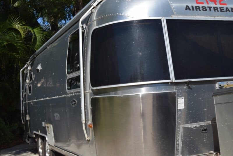 -The outside has some areas that is oxidized and a dent under the right side rear of the camper