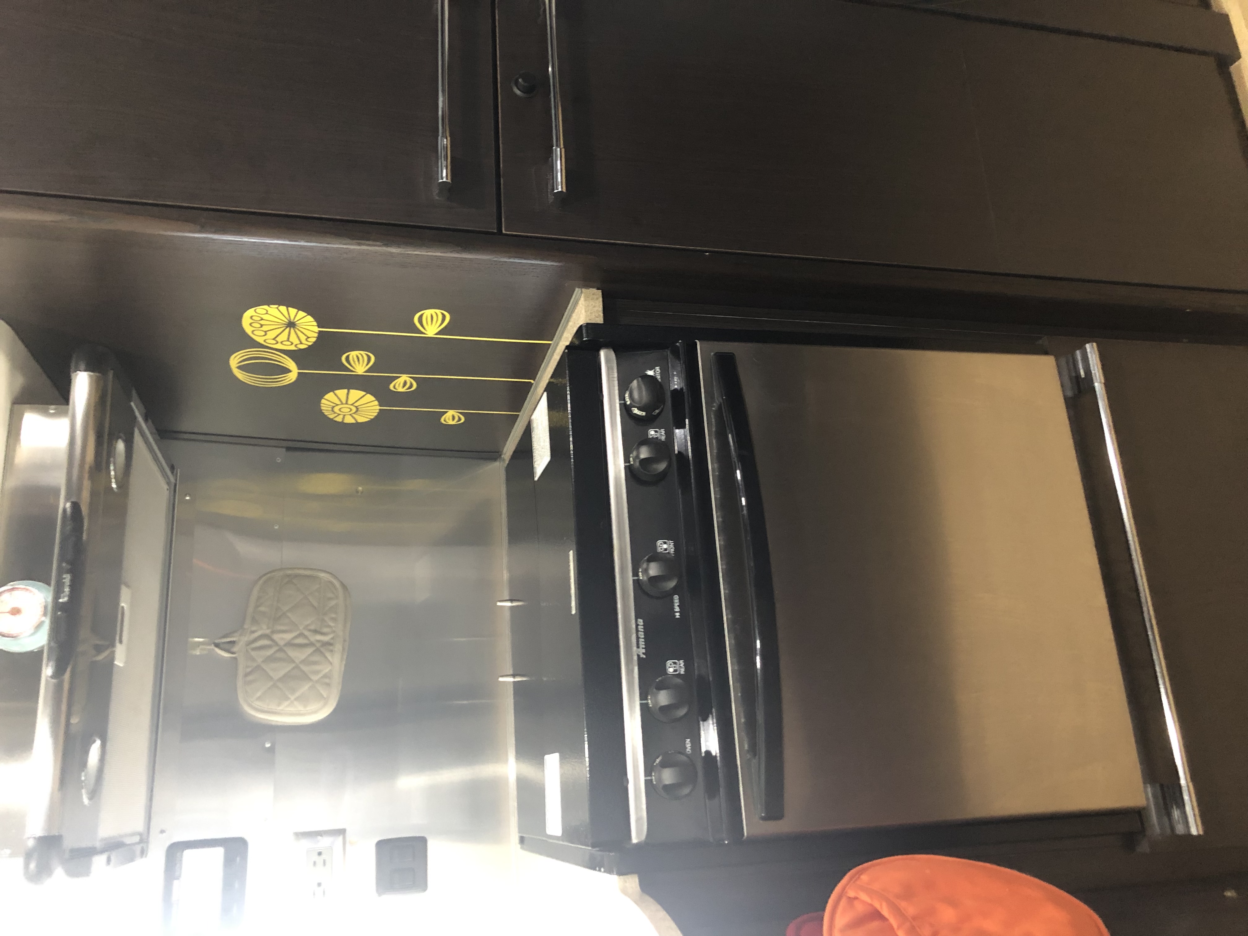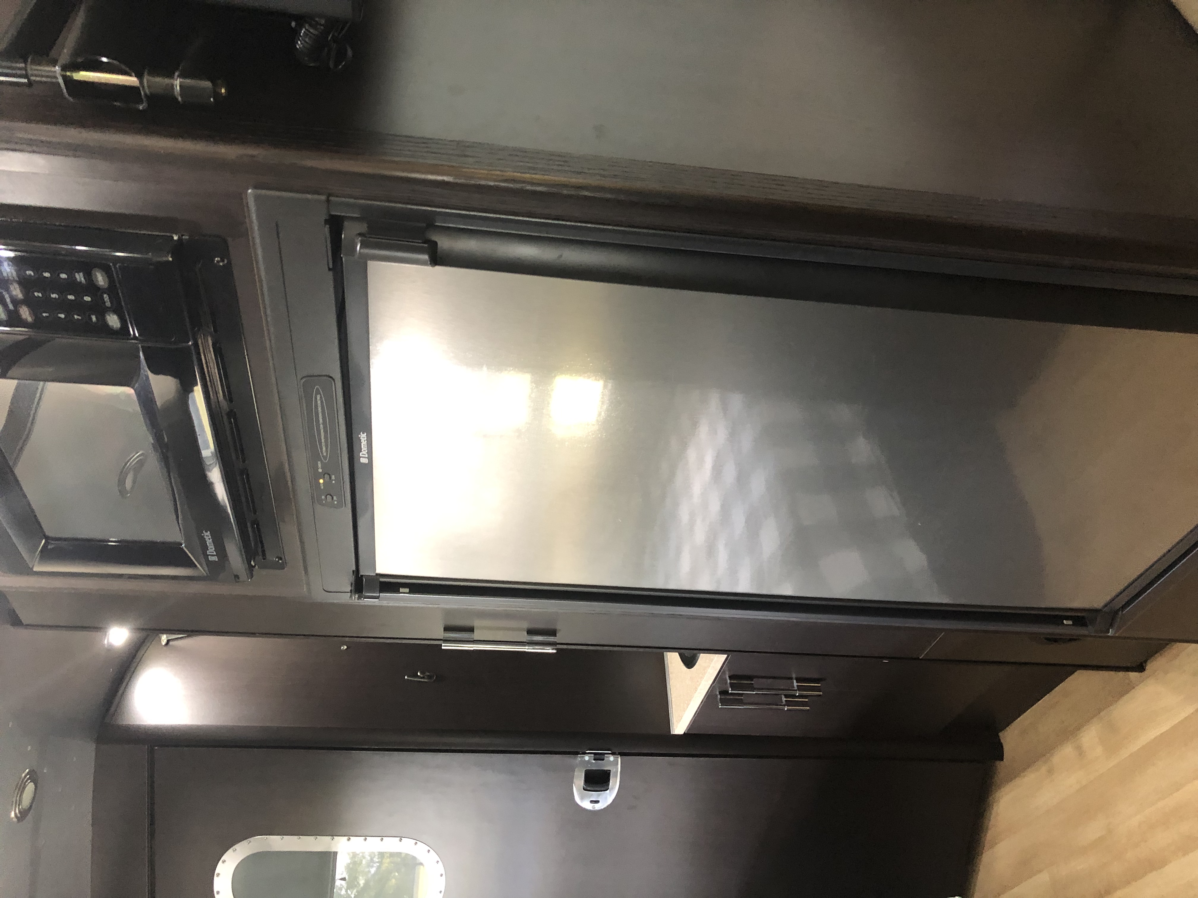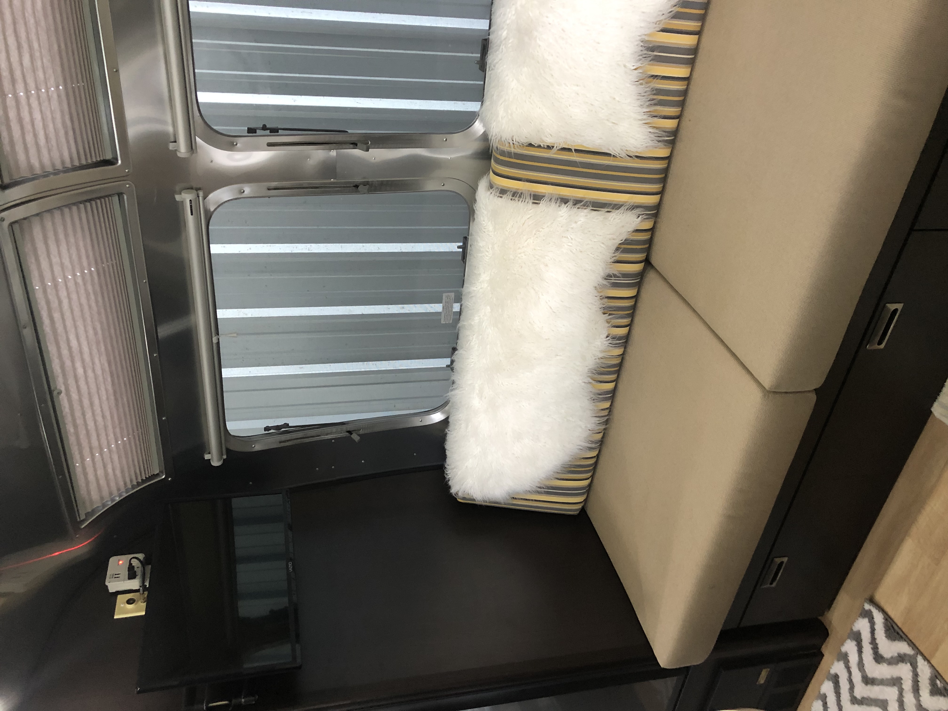 PENDING Pristine, like new condition. Bought larger one so must sell. Dark wood interior, white overhead bins, light flooring. Special “80th year” Edition. Double sized corner bed, corner bathroom. Large shower with seat. Stainless sink. Porcelain commode. Two large closets. Stainless stove/oven. Stainless frig. Bench seating and dining make into two additional beds. Storage everywhere. Includes linens and some cookware. Brand new batteries. New Tires 2019, bearings repacked. Beautiful interior touches.