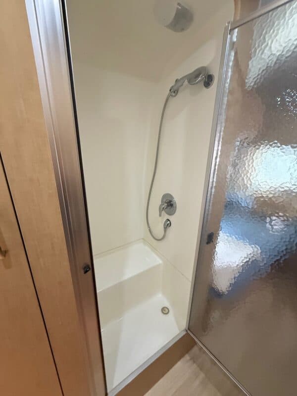 This model has rear twin beds, leather cushions, dinette can convert to a double bed, sleeping 4 comfortably.