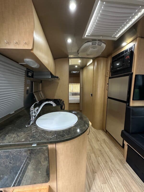 Inside, the interior is clean, well-maintained, and ready for your next adventure. All appliances and systems are in good working order, and the original bed is in place.