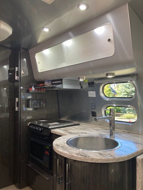 The Onyx Edition includes designer interior finishes including high quality counter-tops, cabinetry, bedding, throw pillows and the dreamy Ultraleather on the pull-out couch and dinnette seating. The buttery feel and rugged performance of Ultraleather make it the perfect waterproof, stain-resistant fabric for adventuring with the luxury leather feel you expect from the Airstream experience.