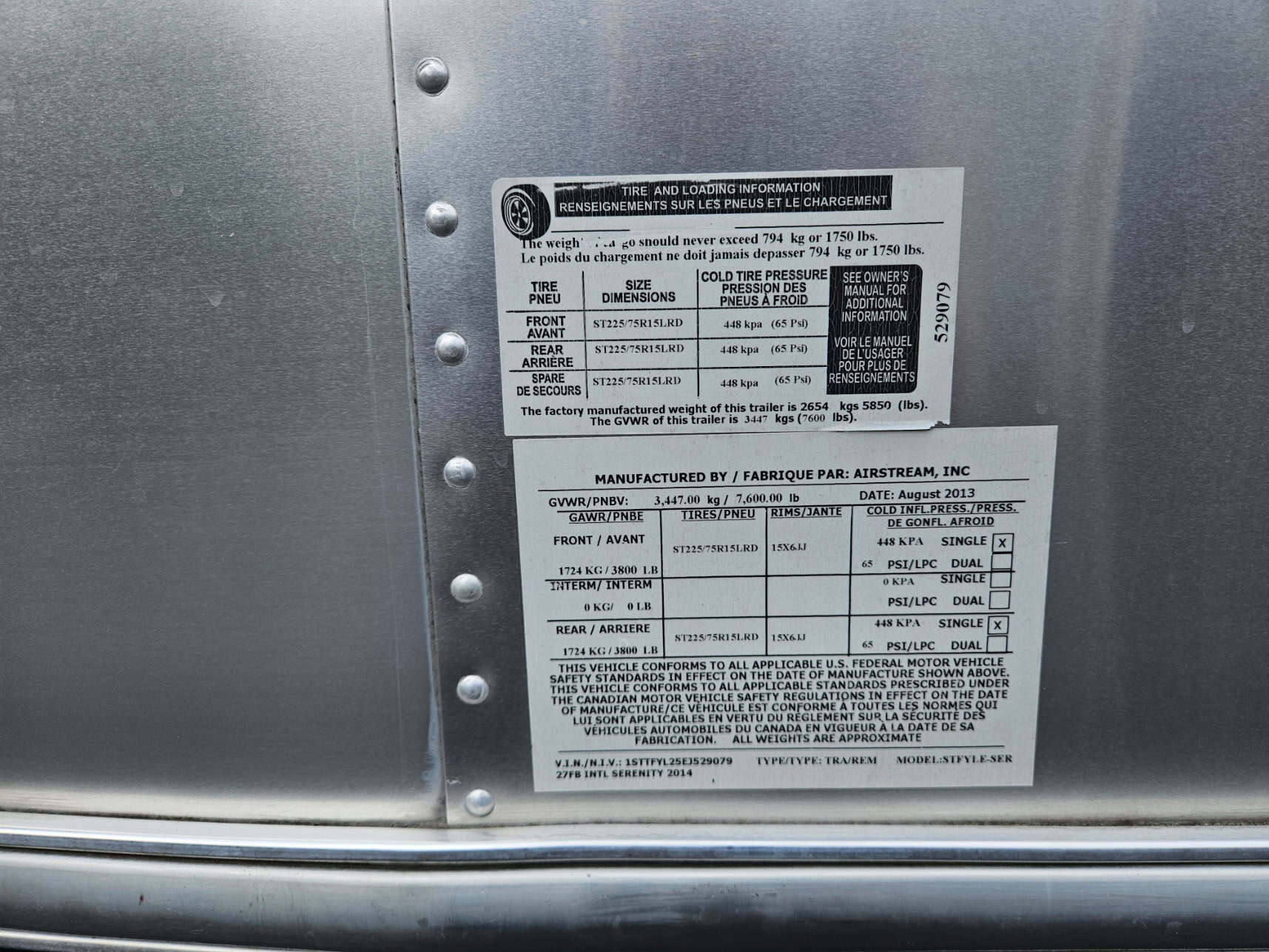 2014 Airstream – International Serenity 27FB. Everything works great with the following upgrades: