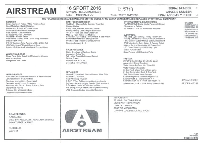 This Airstream Sport 16 has been perfectly maintained with no dents or scratches – all systems work great. It is set up for off the grid camping – the solar/lithium battery combination provides virtually unlimited electricity without the need for a generator. Our usage was primarily National and State parks in the West. We tow it easily with our VW Touareg. Identical to new models which now cost over $62k.