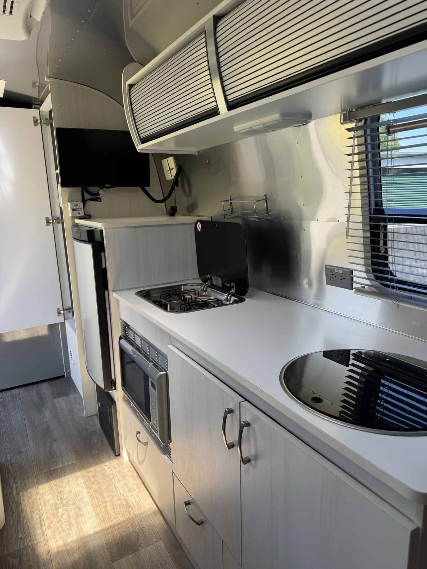 Yep, it IS like new. No bumps, lumps, dings, scratches, dents or leaks. Our Airstream was kept in a covered storage building for years. The outer shell is just like from the factory no corrosion. Everything works. The refrigerator can run on a20 volt, battery power, or propane. The water propane heater works perfectly. The LP gas stovetop works is like new. The microwave is also a convection oven. The air conditioner works and it stays nice and cold. New Goodyear Endurance tires installed in 2025