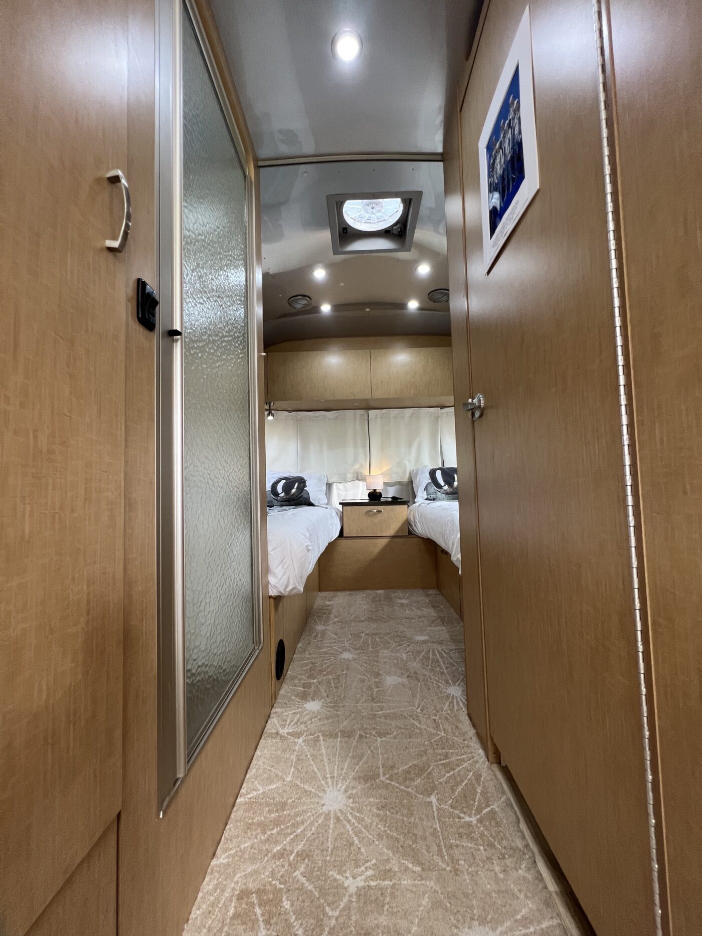 Excellent condition and price dropped below value! Awesome 2016 Airstream Flying Cloud 25 Front Bed Twin has plenty of internal and external storage capacities with an innovative floor plan that sleeps 5. At 25’11″L x 8’5.5″W x 9’H, you will have no problem fitting into any state or national park. We decorated her with a midcentury NASA theme, so she is ready to roll to launches, or style her your own. When not traveling, the Flying Cloud makes a modern office or guest house.