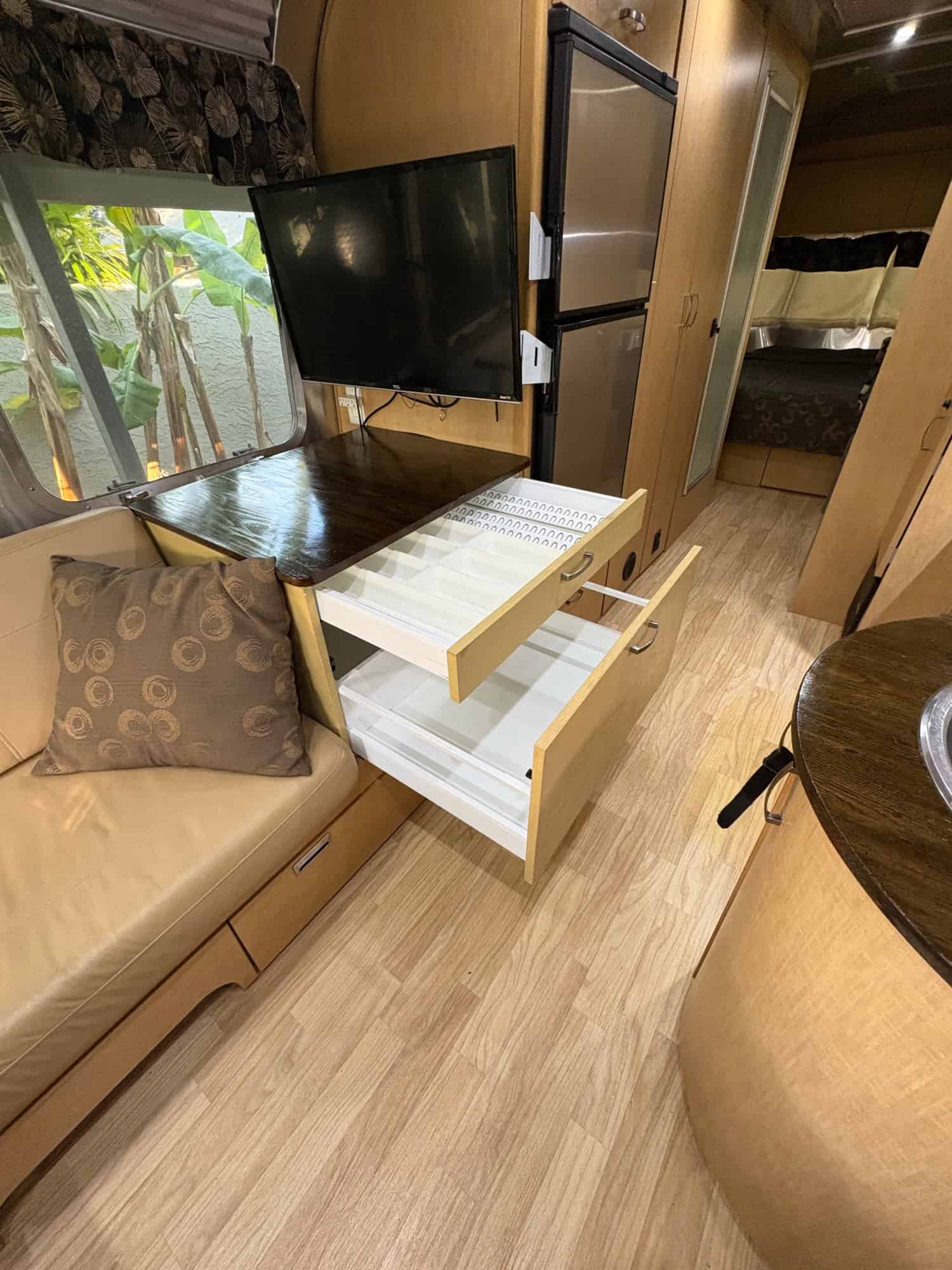 For a floorplan and list of standard features, check online 2016 Airstream Brochure. Our Flying Cloud has one ducted AC unit, so it runs on 30 amps.