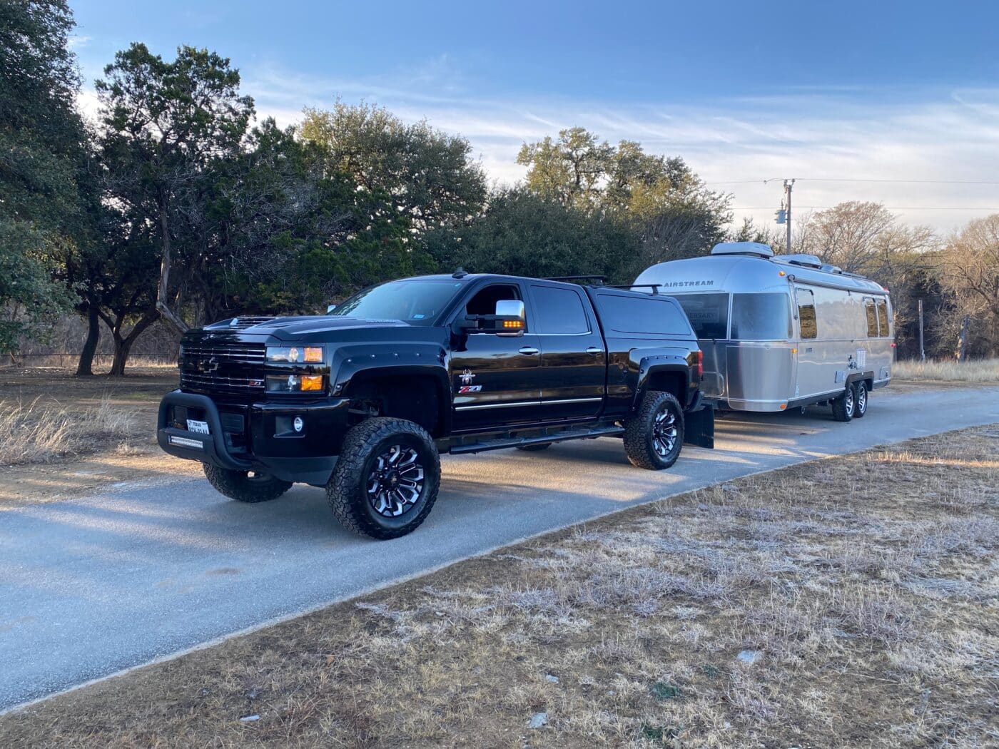 2018 Chevy Silverado 2500 HD with Black Widow Package, topper and roof rails…this truck is a sexy beast with the Duramax/Allison transmission combo. Mileage 101,000. New DPF at 93,000 miles. All new fluids (transmission, transfer case, oil) at 99,800 miles. Value is 50,000. Discounted if bought with the Airstream.