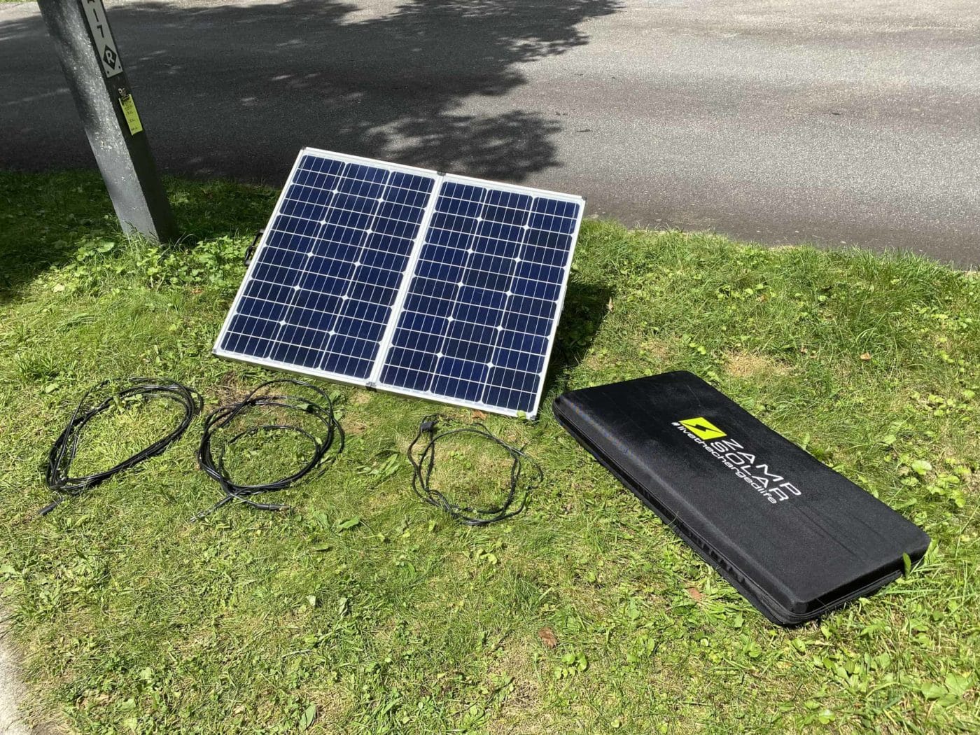Zamp 140 watt solar panel with two 15-foot extension cords (as shown in pictures) purchased May 2021.