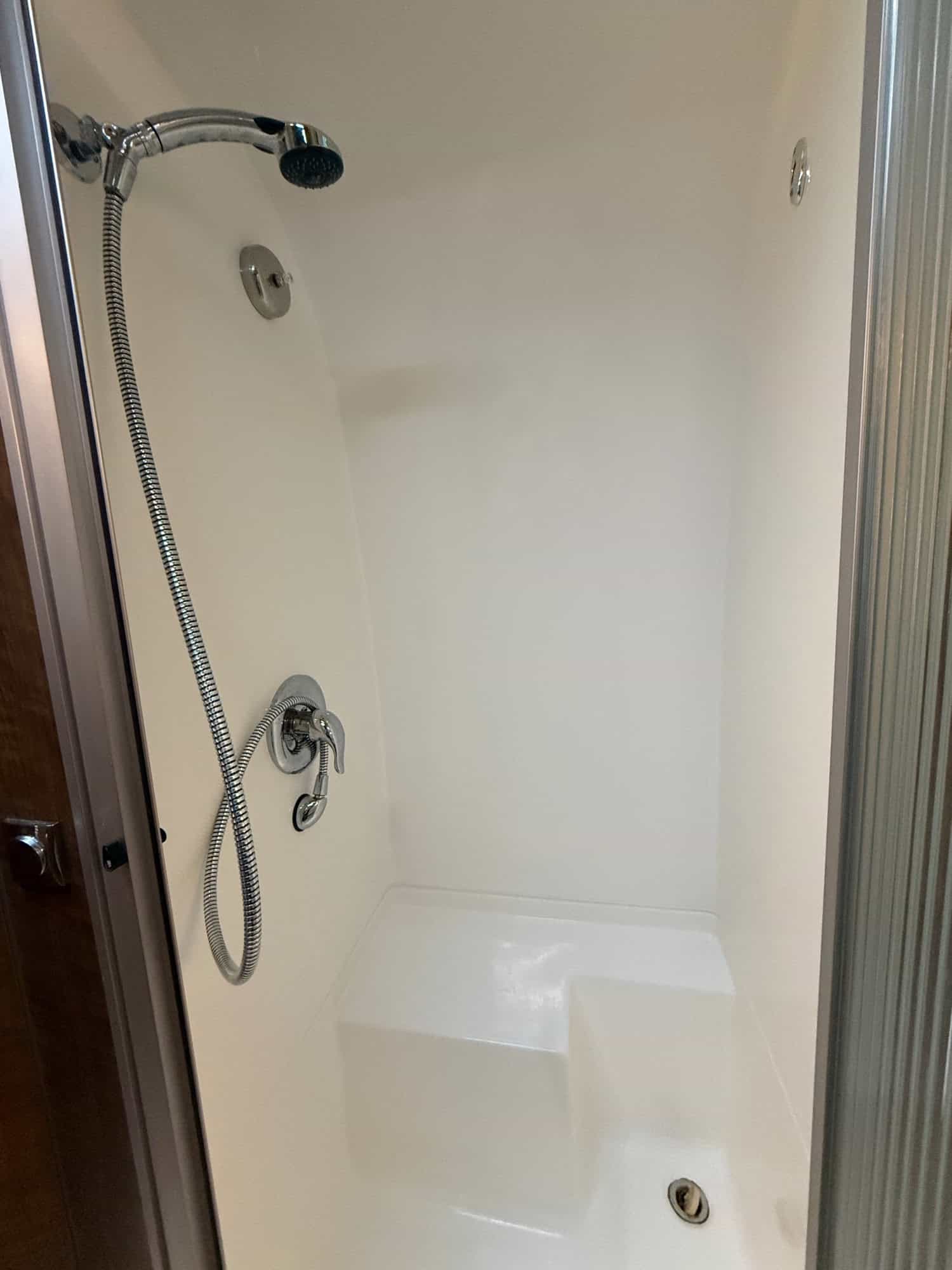 This beauty is like new and has been used less than 30 days. The contemporary and elegant living space is outfitted in a soothing grey/ white color scheme. The open layout includes a fully-equipped kitchen with high-end appliances and plumbing fixtures (Grohe), Corian countertops, and an open dining area which can be converted into a comfortable sleeping area for two. The two twin beds in the rear provide sleeping versatility and memory foam comfort.