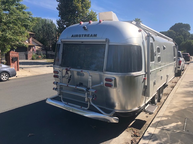 2019 Globetrotter rear Bedroom. Comes with automatic awning and new stabilizers. Has 280 watts of solar and new brakes installed by Air Stream, Los Angeles. In addition to the trailer you will be getting a plug and play Dish satellite with stand, CD player, propane BBQ, propane fire pit, all the silverware, hoses and tools. This trailer is a non-smoking trailer. It will sleep 6, and comes with bedding and required cushions. A heavy duty trailer hitch and sway bars also comes with the package.