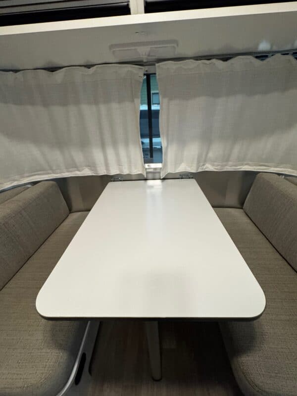 Like new, only used locally twice. Easy to maneuver and lightweight enough (3,150 lbs) to be towed by most SUVs. At 16ft the Bambi fits into campgrounds inaccessible to larger trailers. The galley kitchen is equipped with all the comforts of home: refrigerator, two-burner cooktop, microwave (never been used), and stainless steel sink. The dinette is a comfortable lounge space with panoramic views that doubles as a second bed, allowing the Bambi to sleep a total of 4 people.