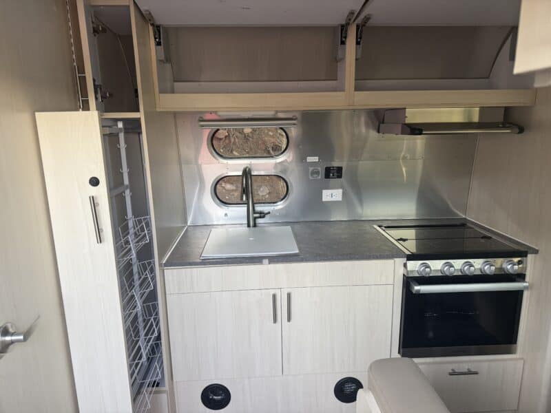 Rotor Shades at the dinette, kitchen sink, & bathroom.