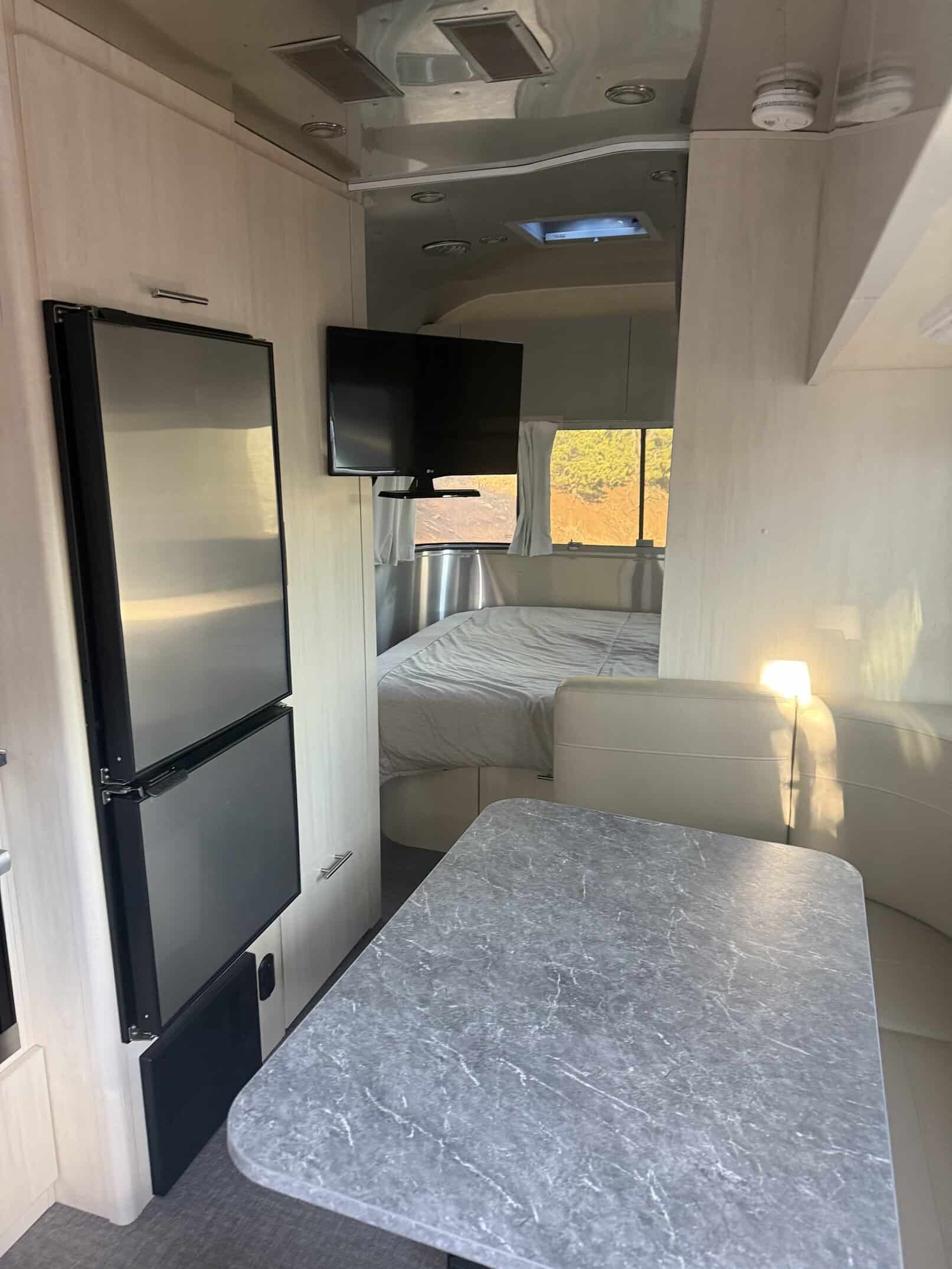 Swing Out Television that can be watched from the Bedroom or Dinette area. Unsure of the size at this time.