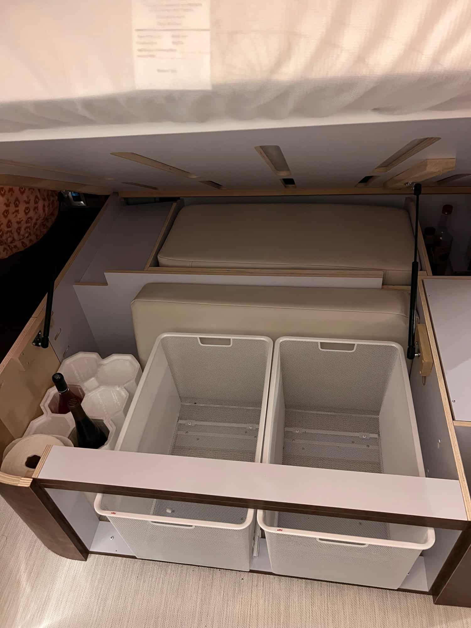 * Custom Installed Sliding Mesh Baskets Under Bed (accessible when bed is down)