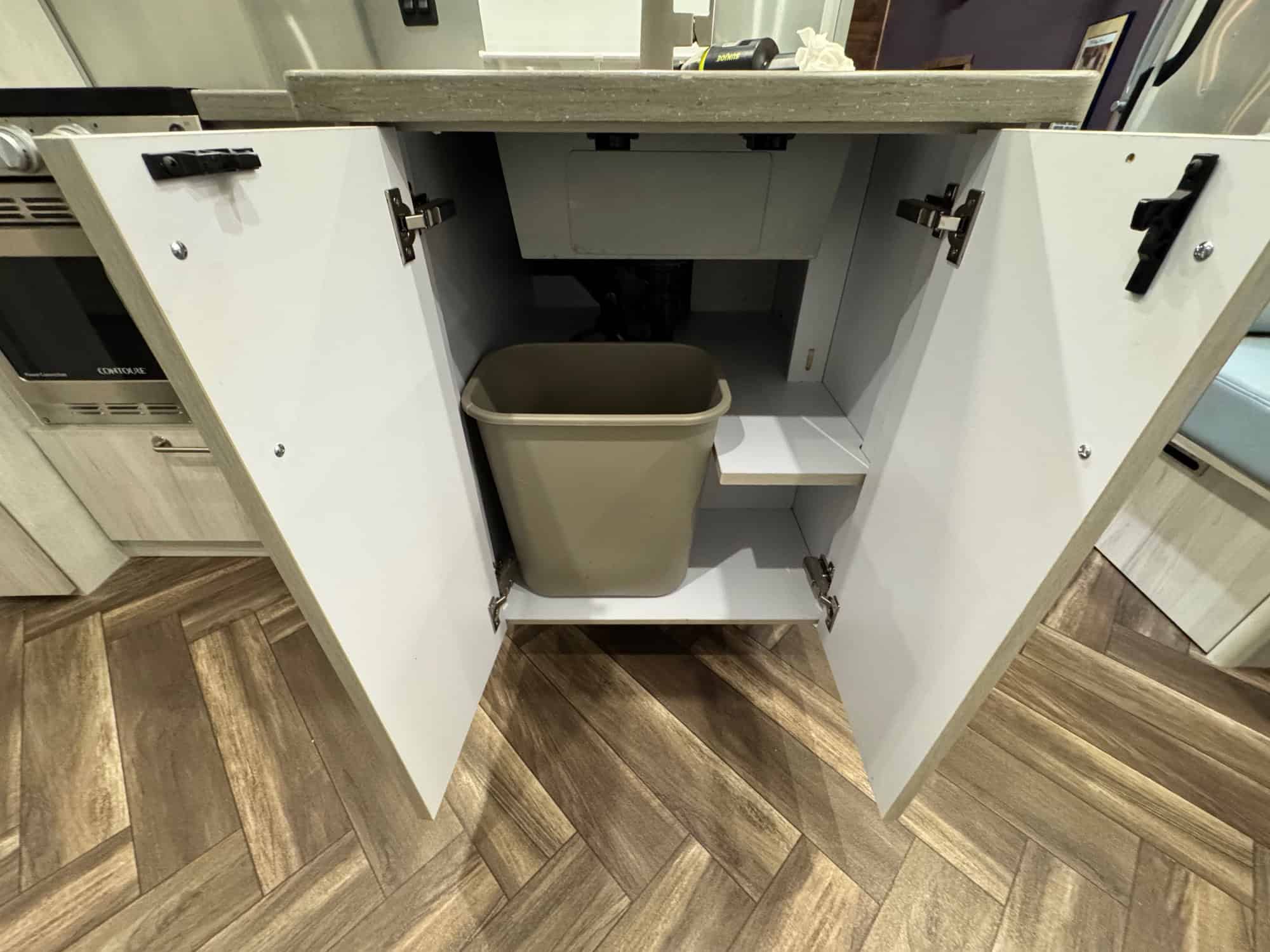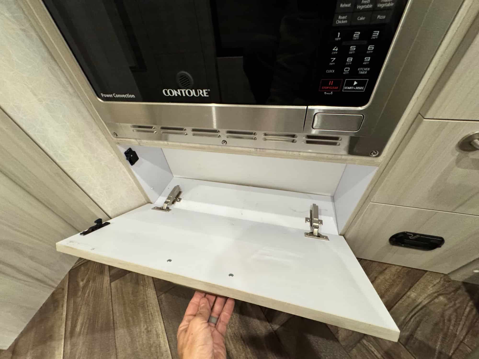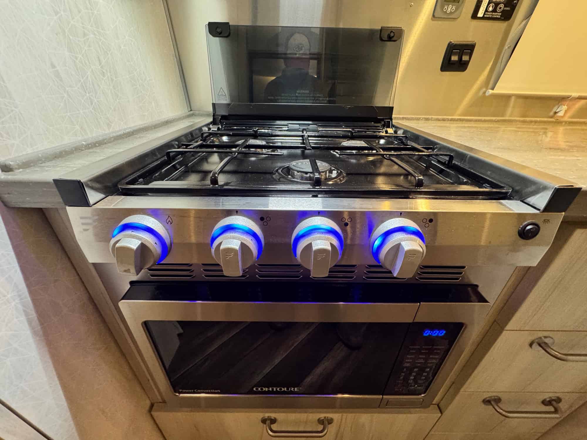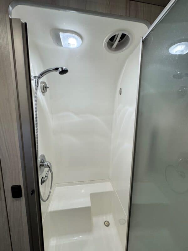 Inside, you'll find a well-appointed kitchen with top-of-the-line appliances, ample storage space, and a spacious dining area. The living area is cozy and inviting, with plush seating and a large panoramic window that offers breathtaking views of the surrounding landscape. The bathroom is modern and stylish, with a walk-in shower and deluxe fixtures.