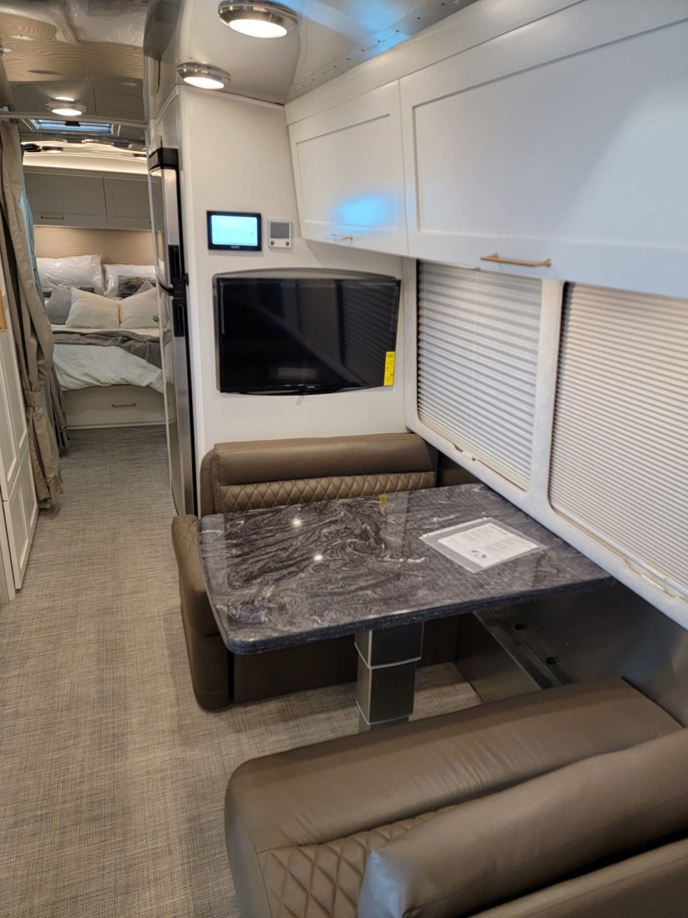 5 weeks old! Went on two trips with wife and 2 young kids and despite loving this coach, we quickly realized we needed something larger. Included is Anderson leveling kit, levelpro, and transferable warranty. Rear bed queen, comfort white cabinets, with cafe leather seats.