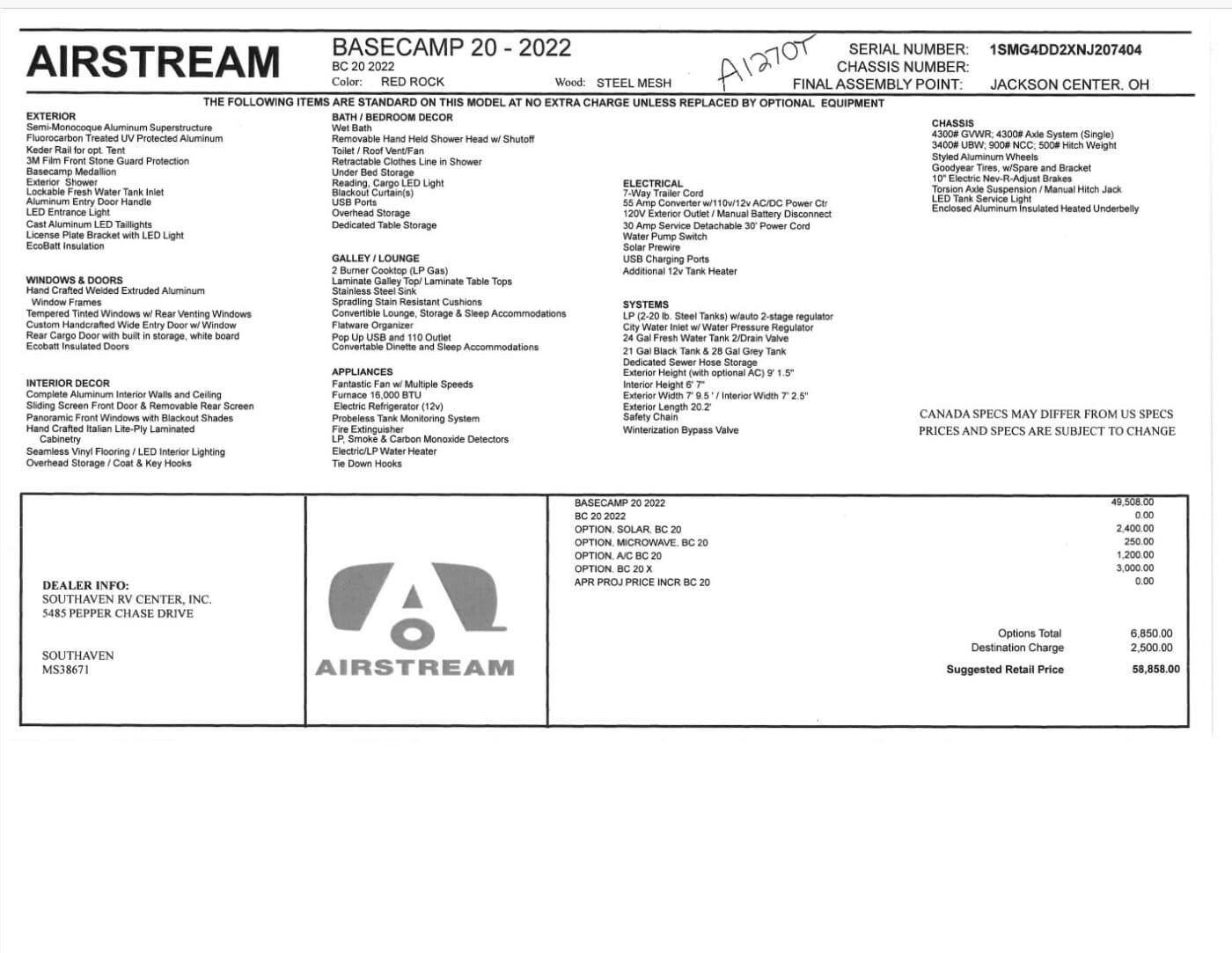 Used only 3 times (6 nights) and ordered brand new from Southhaven RV!! In new/excellent condition and loaded with every option. Absolutely stunning. All systems are in perfect working order, and you still have the balance of the transferrable 3-year warranty. This unit is nicer and cleaner than when we drove it off the dealer’s lot. Parked indoors in our RV/boat shop for the past 11 months.