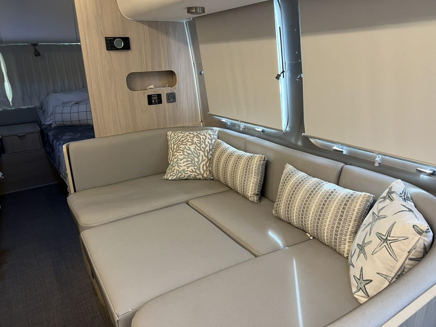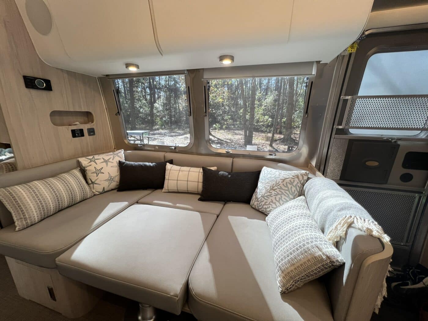 The comfortable layout is perfect for a couple (plus pet) and there’s room for a pet, a guest or kids with the large U-shaped dinette that quickly converts into a second sleeping area.