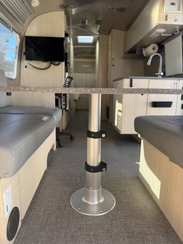 • Upgraded dining table legs w/ Springfield Marine air-powered 3-stage table pedestal leg (makes it easier to push the table down to convert into sofa or bed)