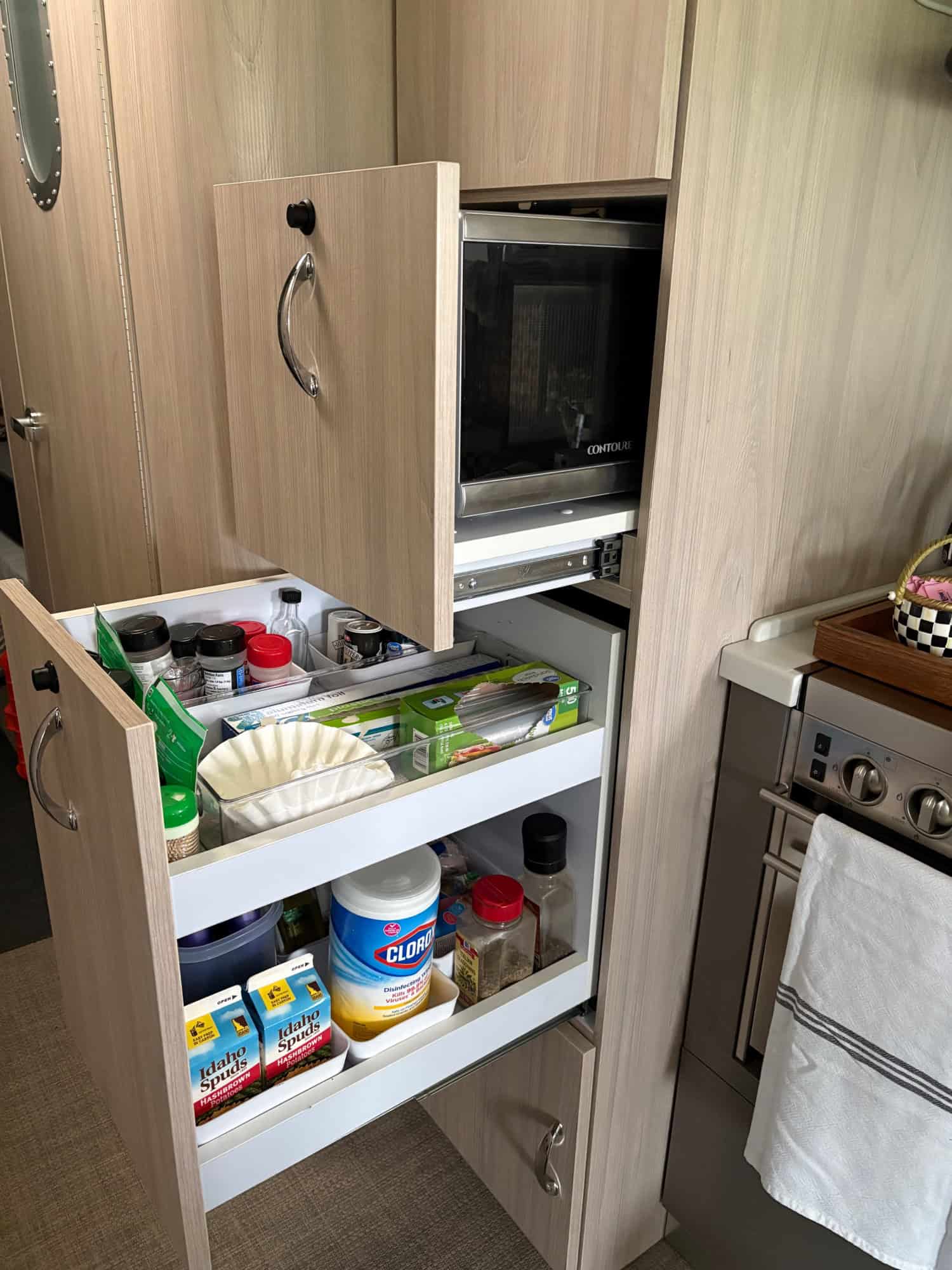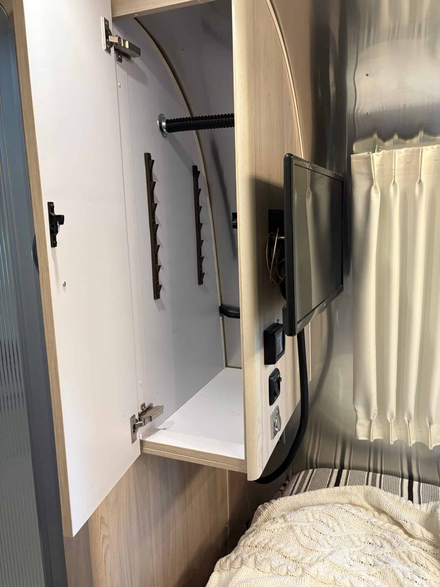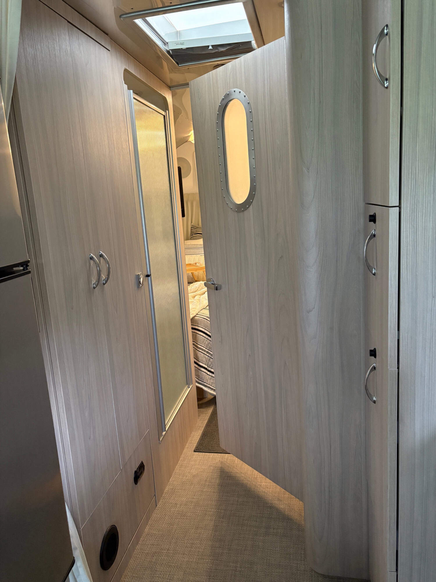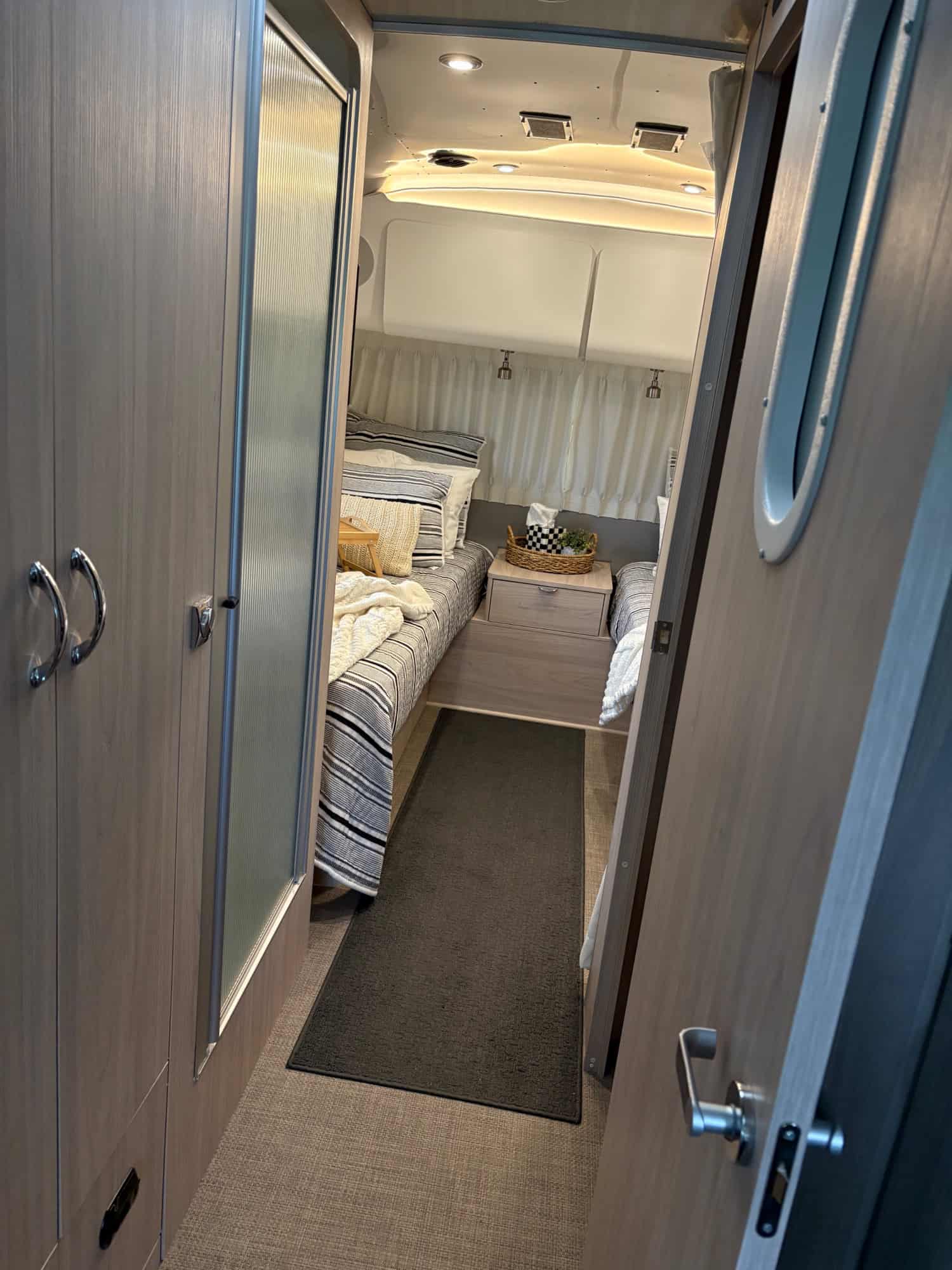 The Globtrotter brings comforts of home with cozy beds, flatscreen TVs and a full bathroom and boasts her natural elm and london grey color scheme, she is packed full of upgrades and add-ons.