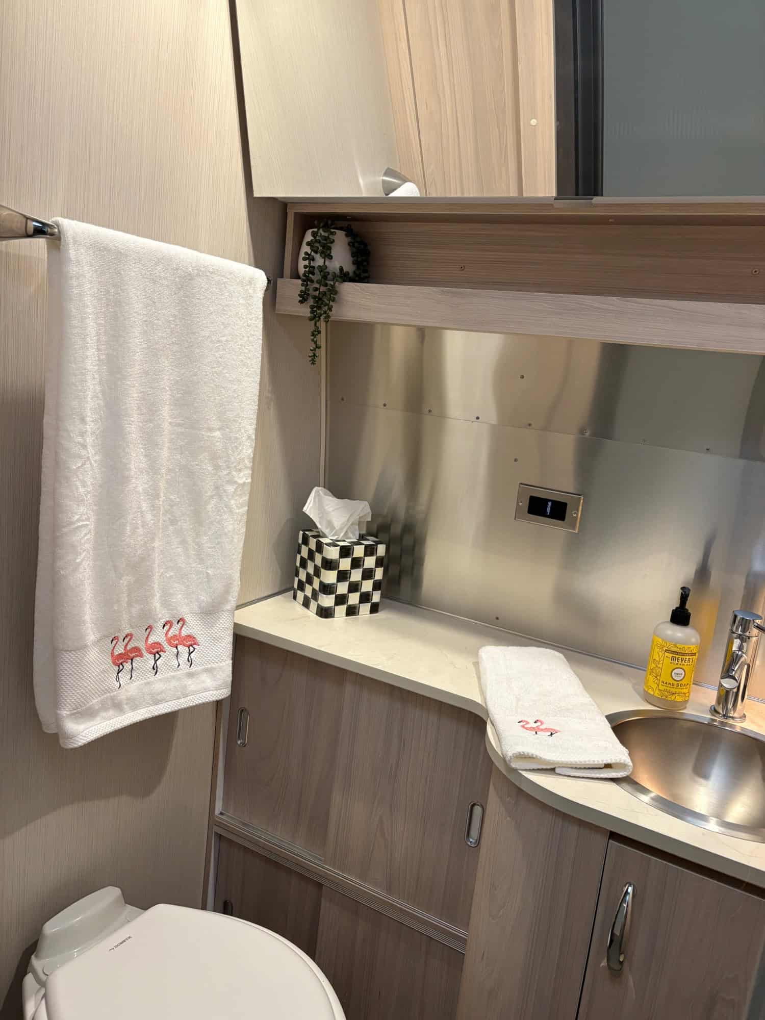 We have all of her original manuals. We have all of the original bedding and pillows still wrapped in original packaging. She is a non-smoking/no pets unit. I realize I have referred to the Airstream as a her, because we have treated her like a family member. She has covered house when she is not traveling and the tires are covered too. Airstream of DFW has enhanced the front frame with bolts to prevent front end separation. We pull this trailer with an Air Safe Hitch (class VII).