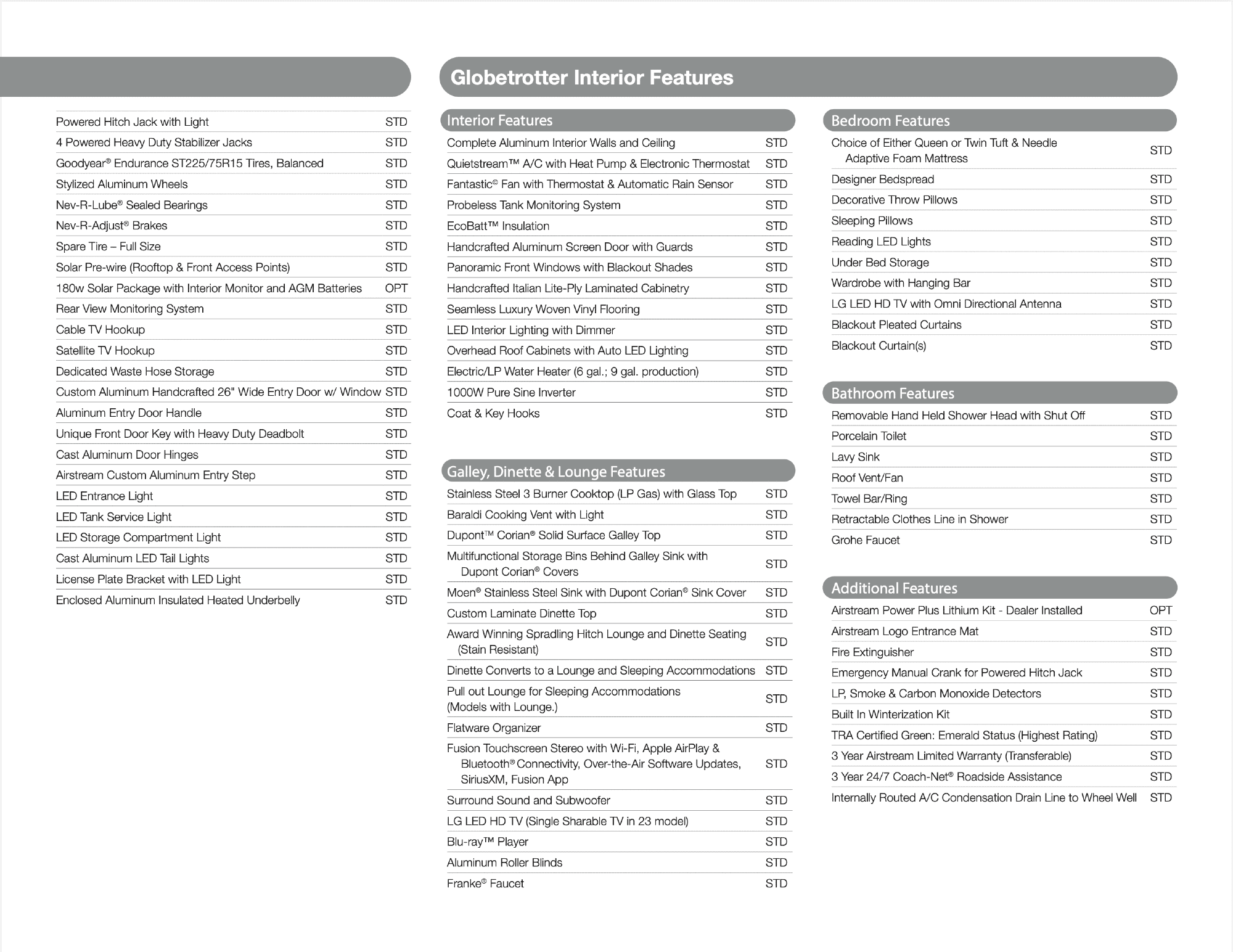 Includes every upgrade available through Airstream at purchase, including: