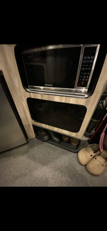 • Fully Equipped Kitchen: Includes a two-burner stove, sink, and a refrigerator to keep your meals fresh on the go.
