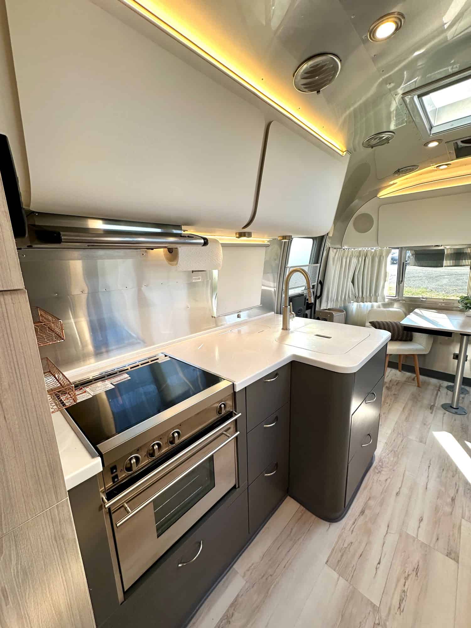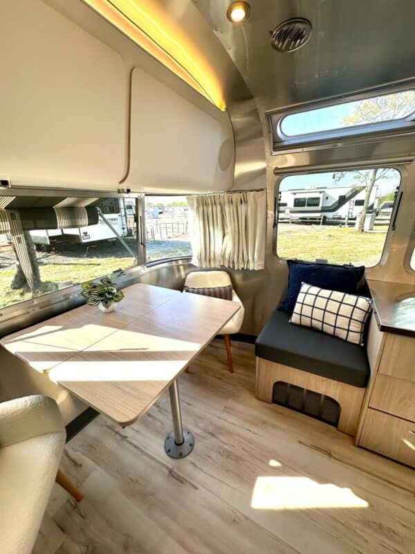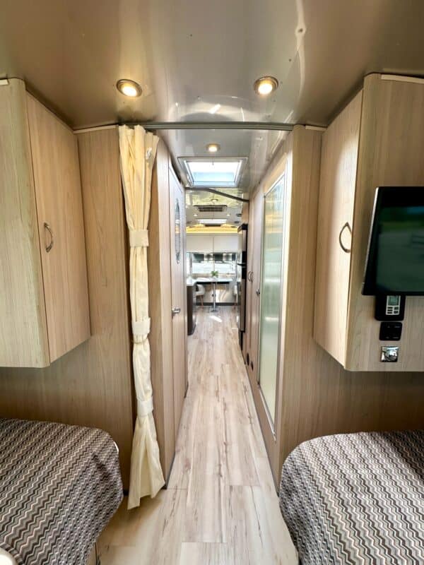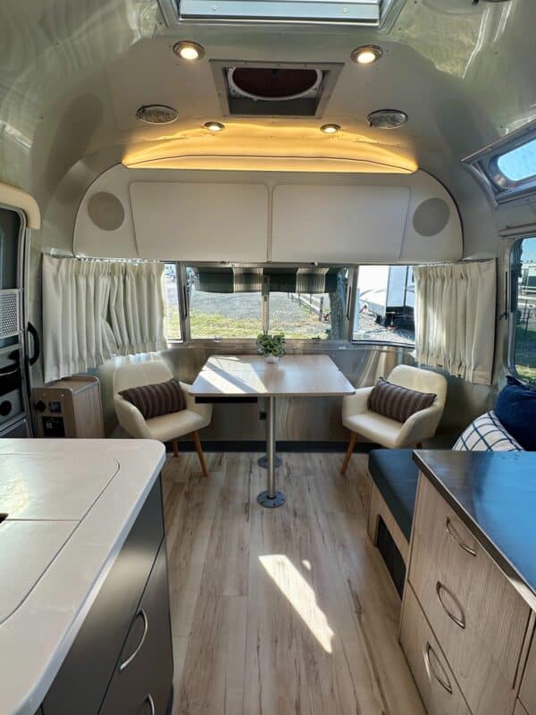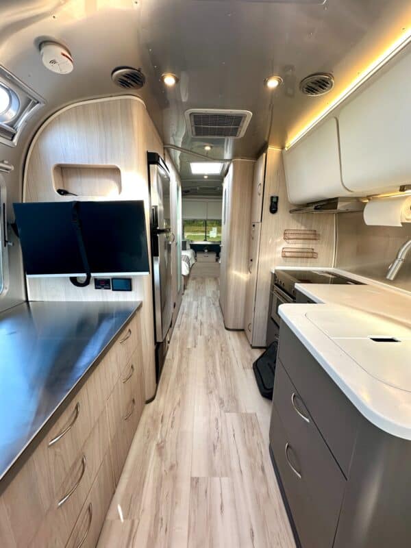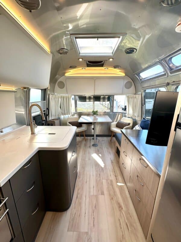 This beautiful 27’ Airstream Globetrotter combines the timeless, classic Airstream elegance with modern, European-style finishes, and Airstream’s proven reputation for quality and high-end finishes. The interior is light and bright, and the numerous upgrades make this Airstream a must see! With 800 watts of solar, lithium batteries, a 3,000 watt Victron inverter, and a 3″ lift kit, you are ready for your next adventure no matter where the road takes you.