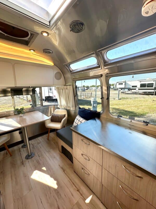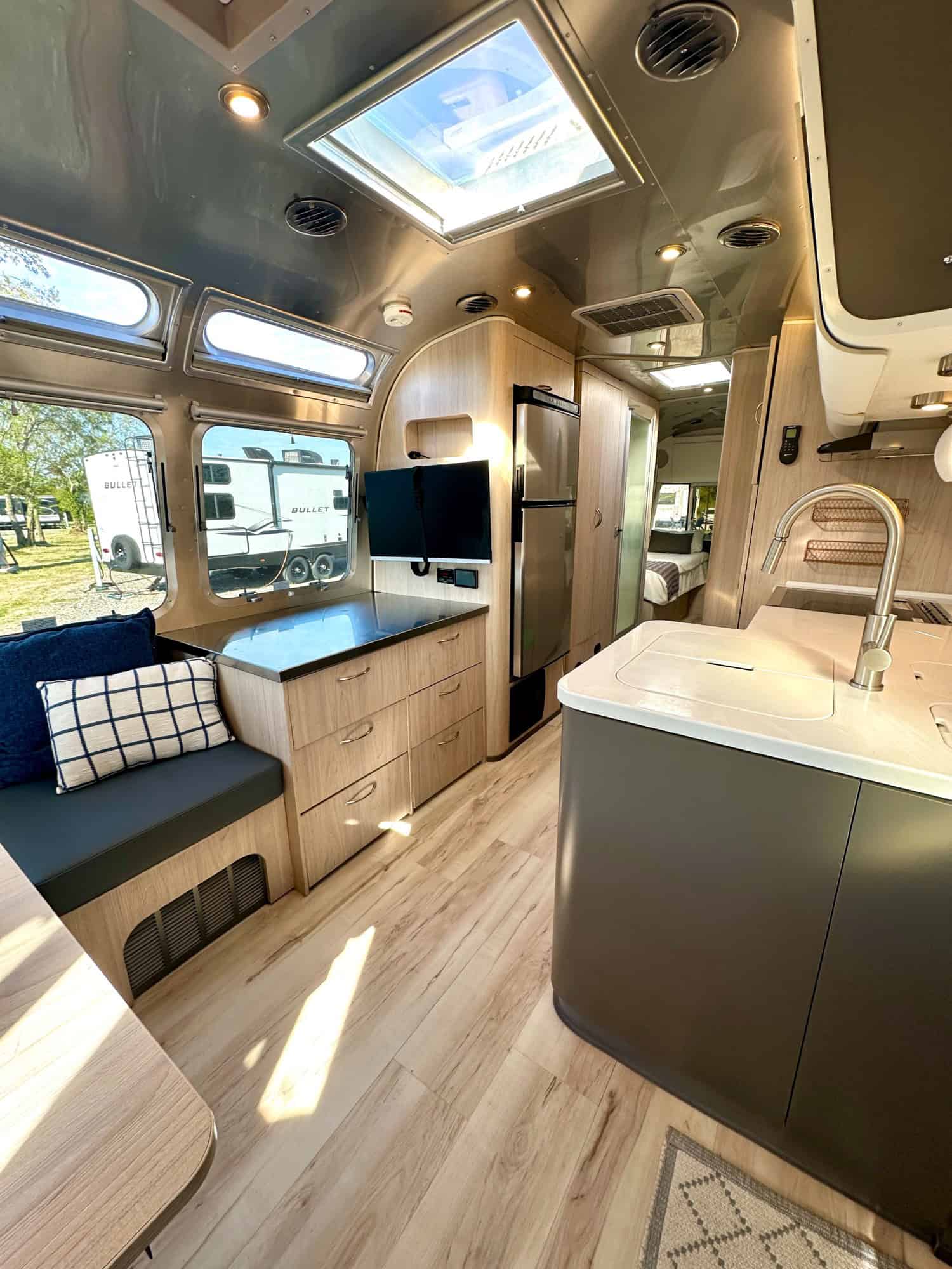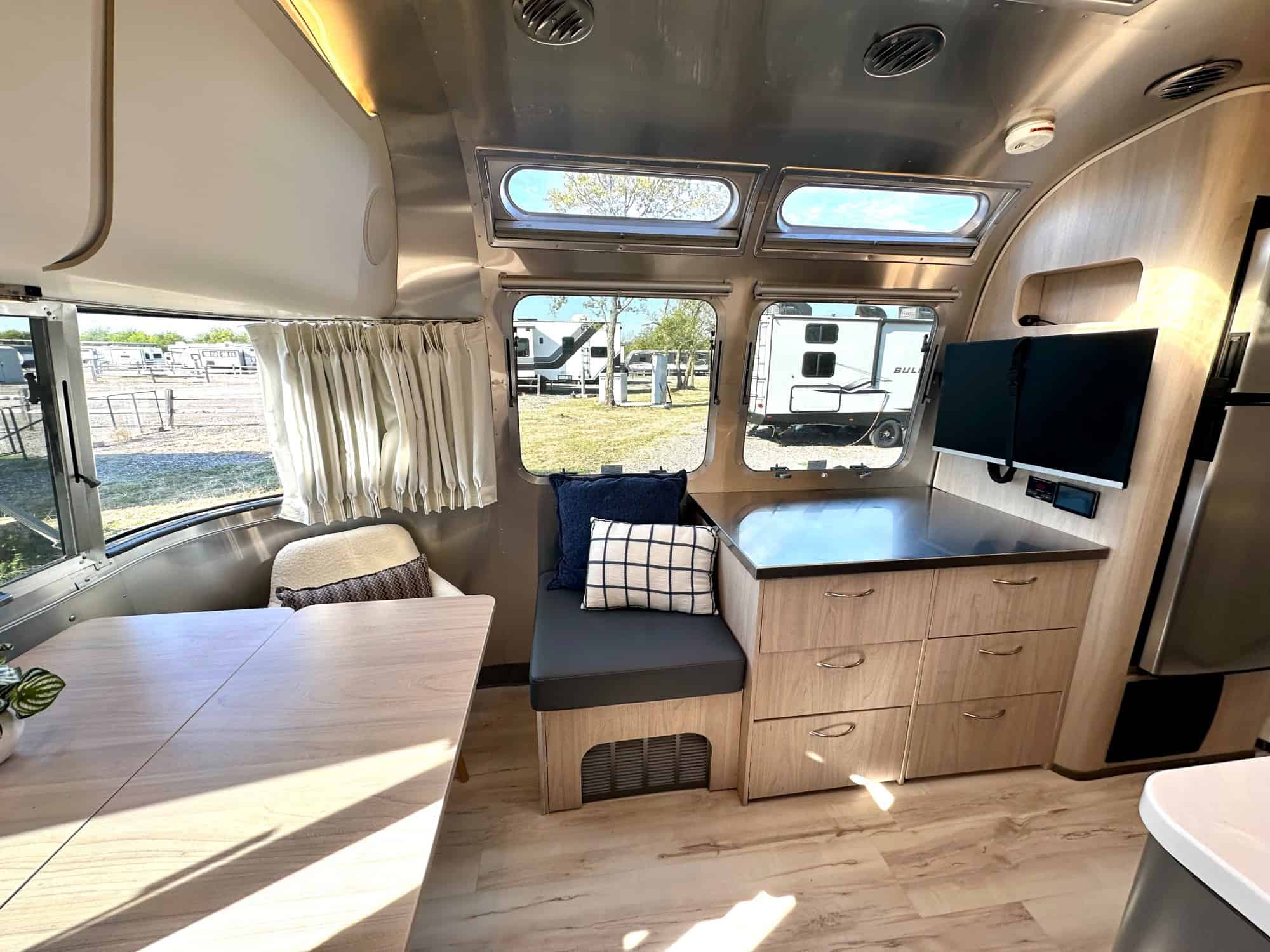 This beautiful 27’ Airstream Globetrotter combines the timeless, classic Airstream elegance with modern, European-style finishes, and Airstream’s proven reputation for quality and high-end finishes. The interior is light and bright, and the numerous upgrades make this Airstream a must see! With 800 watts of solar, lithium batteries, a 3,000 watt Victron inverter, and a 3″ lift kit, you are ready for your next adventure no matter where the road takes you.